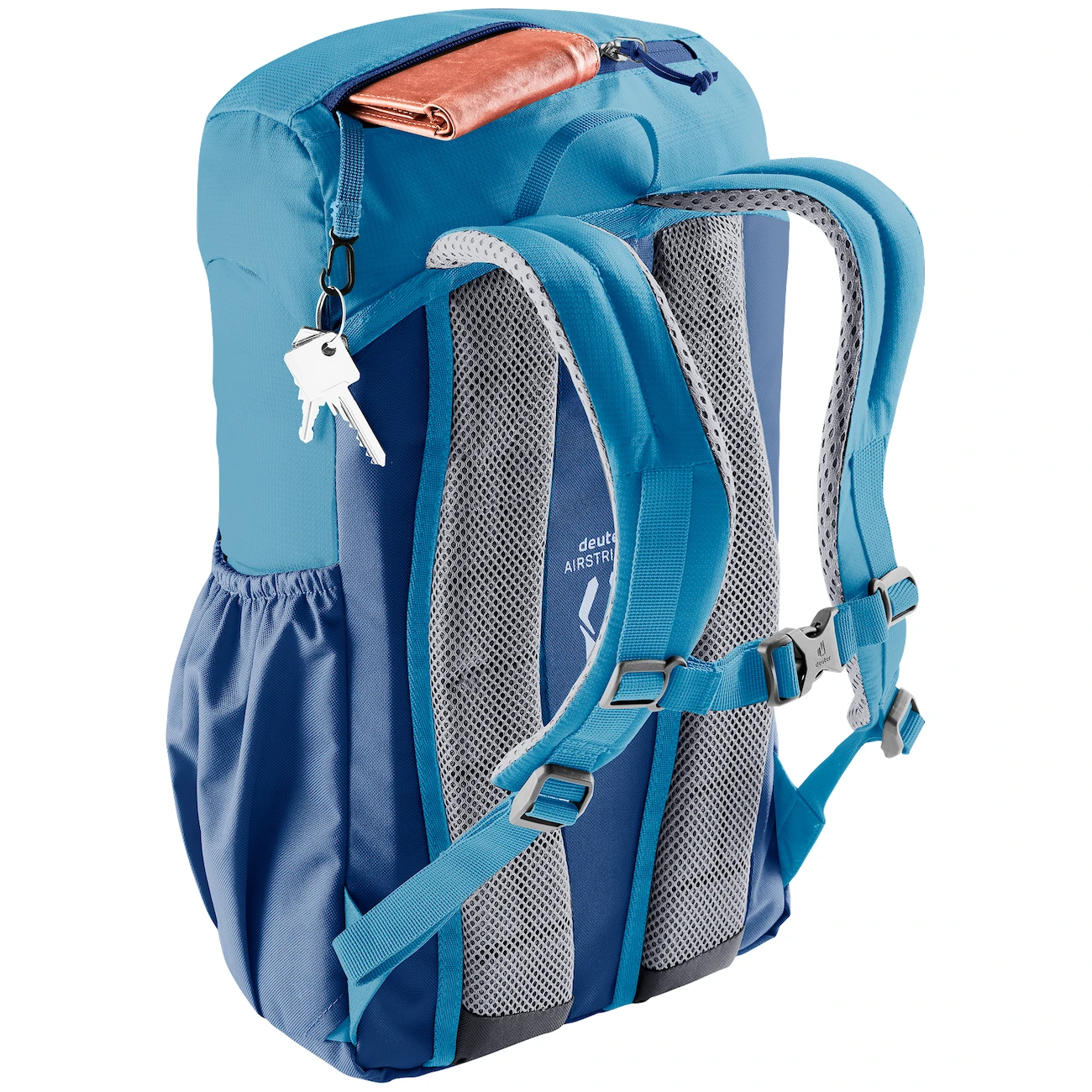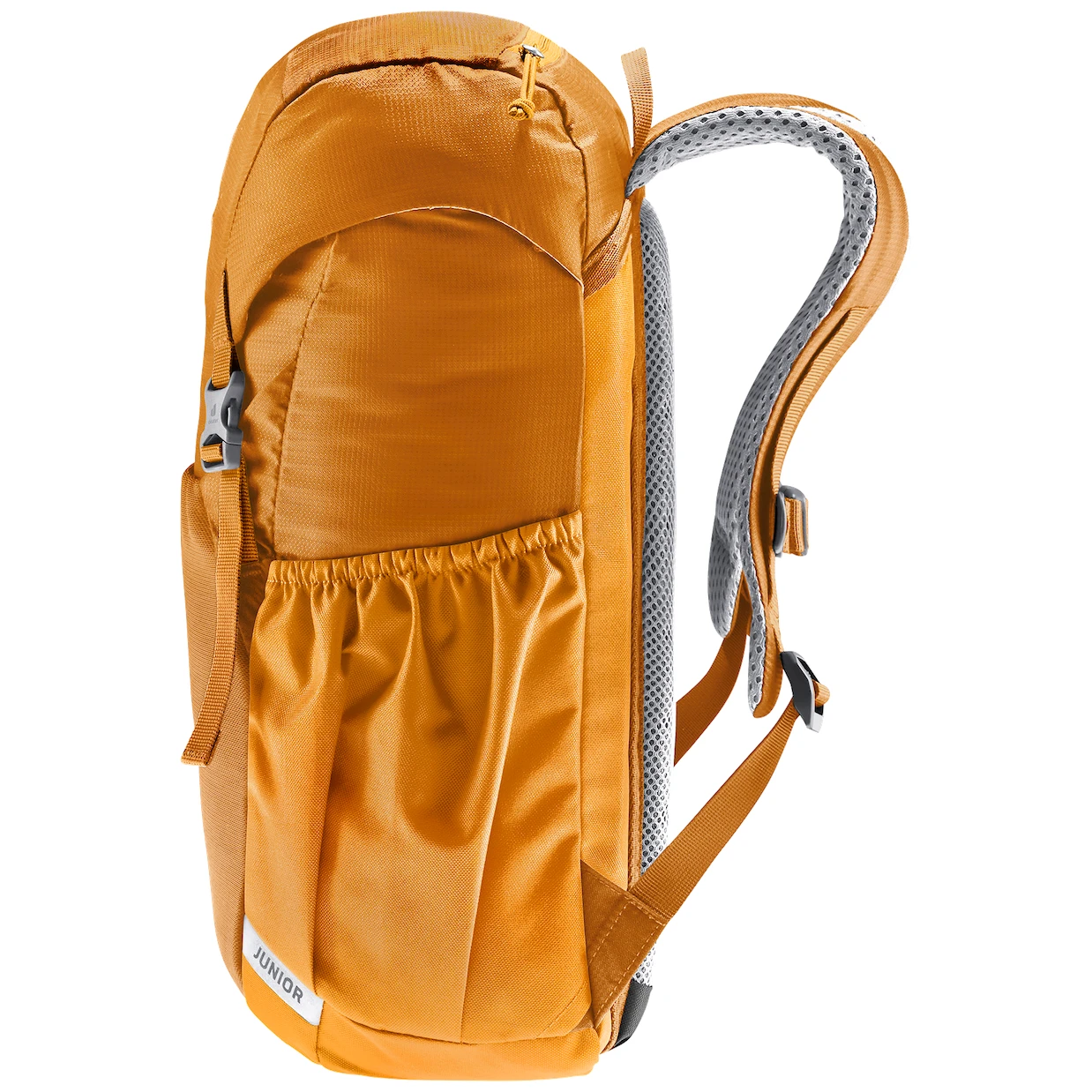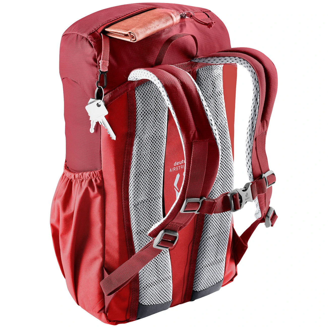 Der Junior Kinderrucksack der Marke Deuter ist in schlichtem Schnitt aus kräftigem und abriebfestem Material gefertigt. Für Komfort sorgen ein gepolsterter Rücken und das Airstripes-Rückensystem. Anatomisch geformte Schultergurte und ein verstellbarer Brustgurt sorgen für sicheren Sitz und Bewegungsfreiheit. Der Rucksack ist perfekt belüftet und Sie werden den großzügigen Stauraum, insbesondere die Reißverschlusstasche auf der Vorderseite, den Deckel mit Tasche, die Seitentaschen und eine Tasche für nasse Gegenstände, sicher zu schätzen wissen. Es bietet außerdem eine Schlüsselschlaufe und reflektierende Patches, um die Sicherheit Ihrer Kinder zu erhöhen.