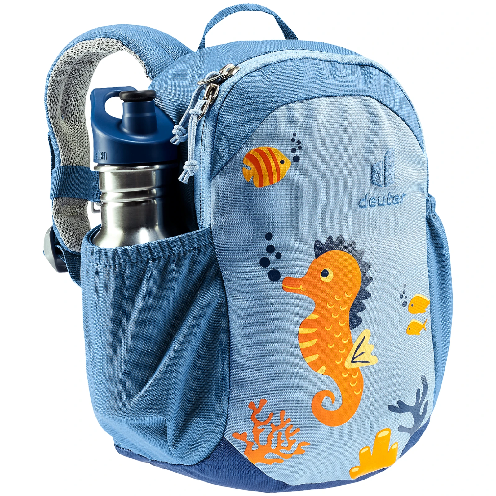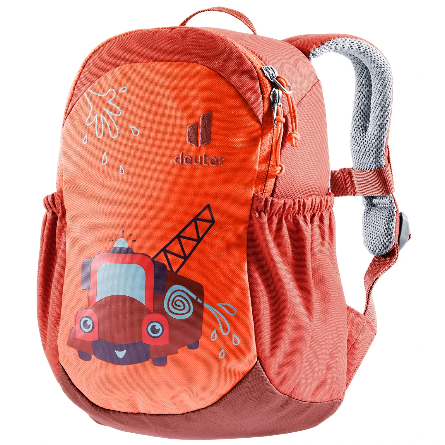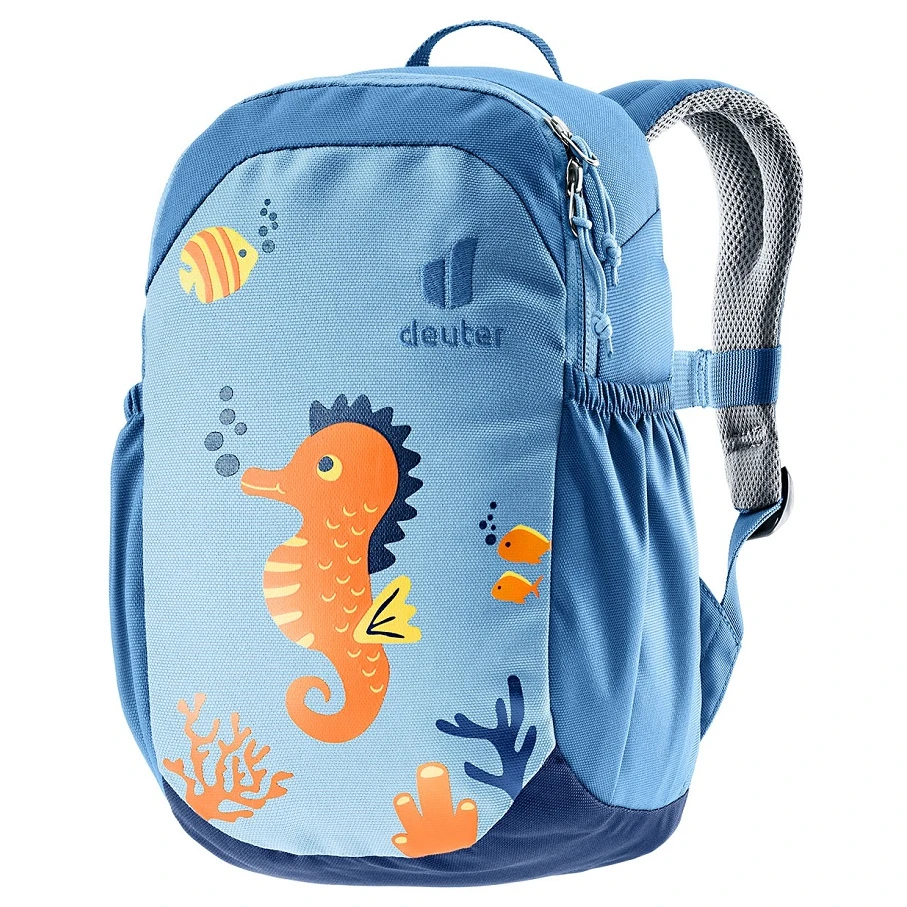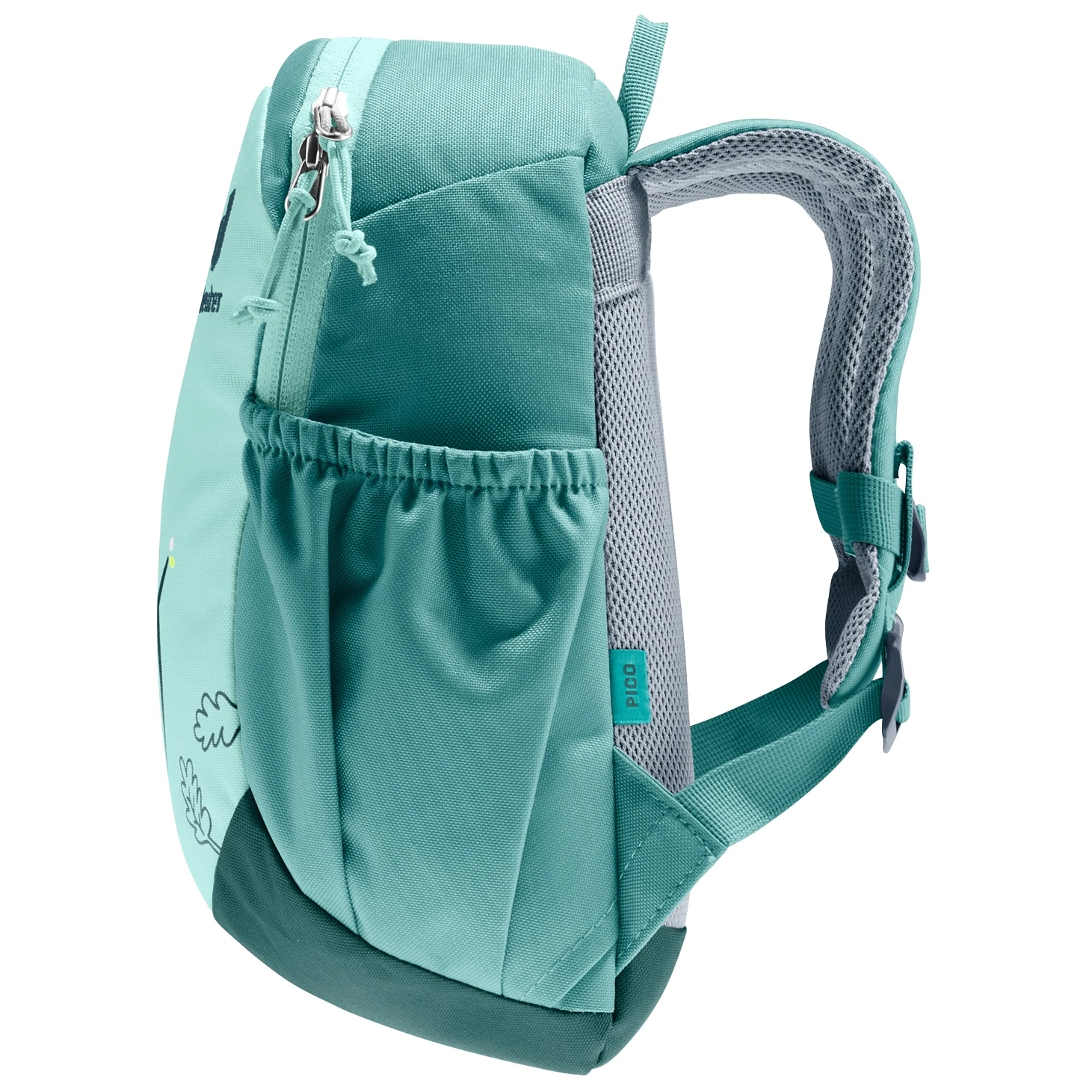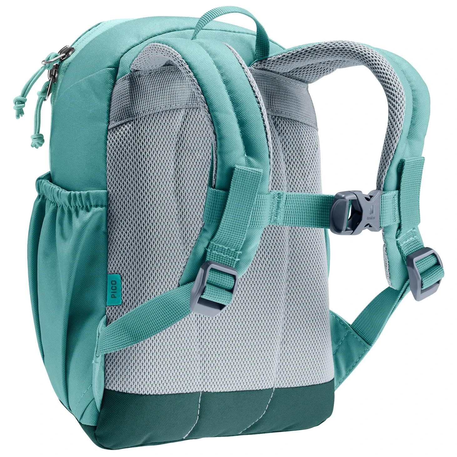 Der Kinderrucksack Pico der Marke Deuter überzeugt durch tolles Design und leuchtende Farben für Mädchen und Jungen ab 2 Jahren. Für Tragekomfort sorgen S-förmige Soft-Edge-Schultergurte und eine bequeme Polsterung. Ein Brustgurt sorgt für Stabilität und sicheren Sitz. Der Rucksack bietet kindgerechte Schnallen, ein geräumiges Hauptfach, zwei Netz-Seitentaschen und eine Schlaufe auf der Oberseite des Rucksacks. Ein gebogener Reißverschluss garantiert einen einfachen Zugriff auf den Rucksack und als Bonus befindet sich innen ein Namensschild.