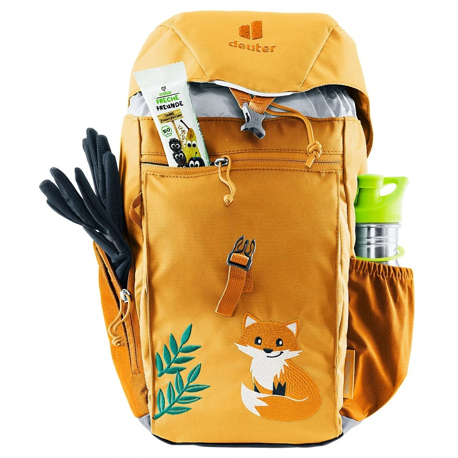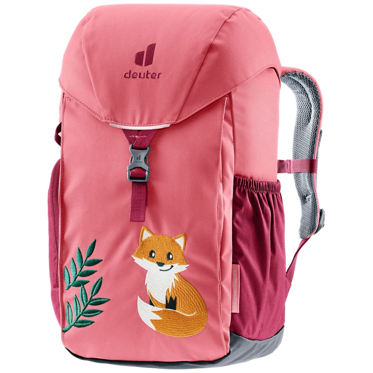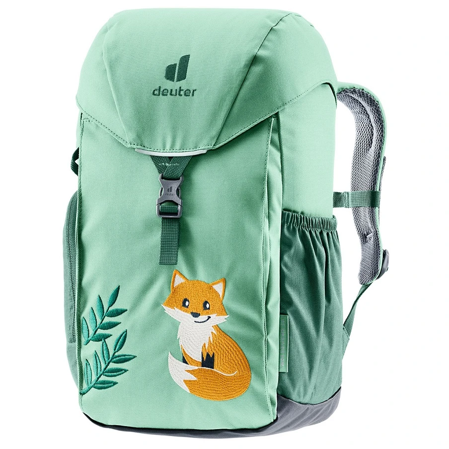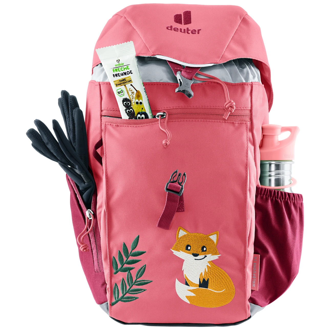 Der Waldfuchs 14 Kinderrucksack der Marke Deuter bietet hohen Tragekomfort und Bequemlichkeit, insbesondere dank des verstellbaren Brustgurtes. Der Rucksack ist geräumig, bietet ein Nasswäschefach, ein Wertsachenfach, eine Klettinnentasche, eine Klett-Fronthaube und eine Materialschlaufe an der Vorderseite.