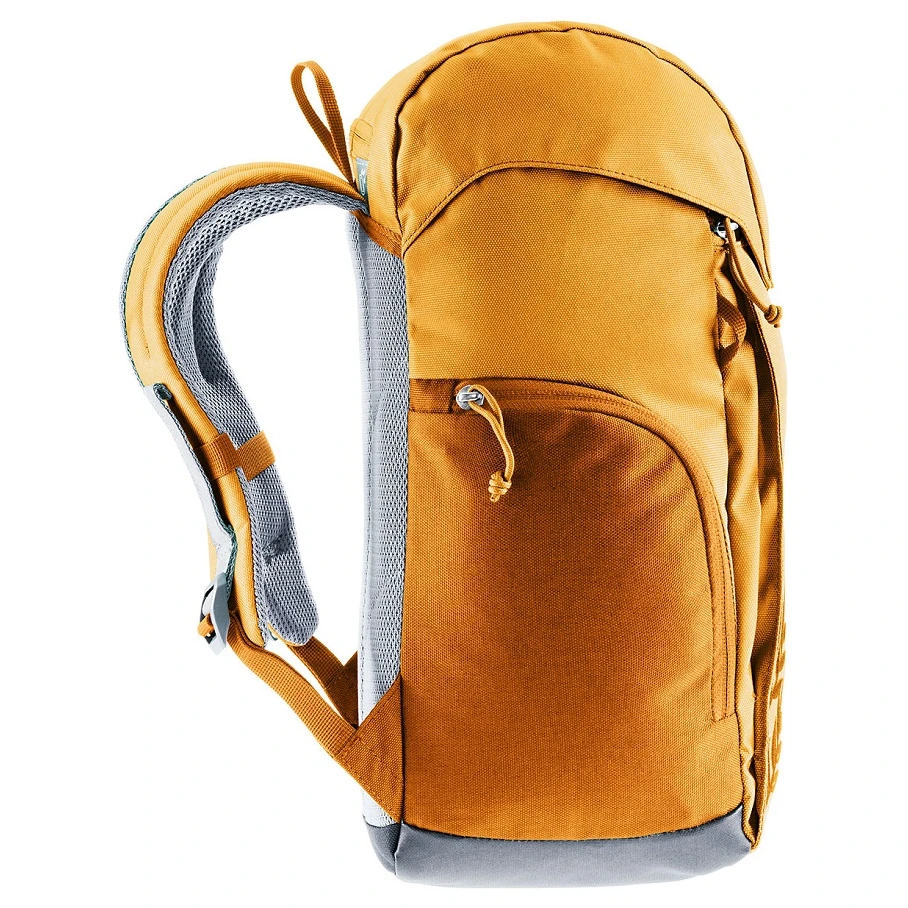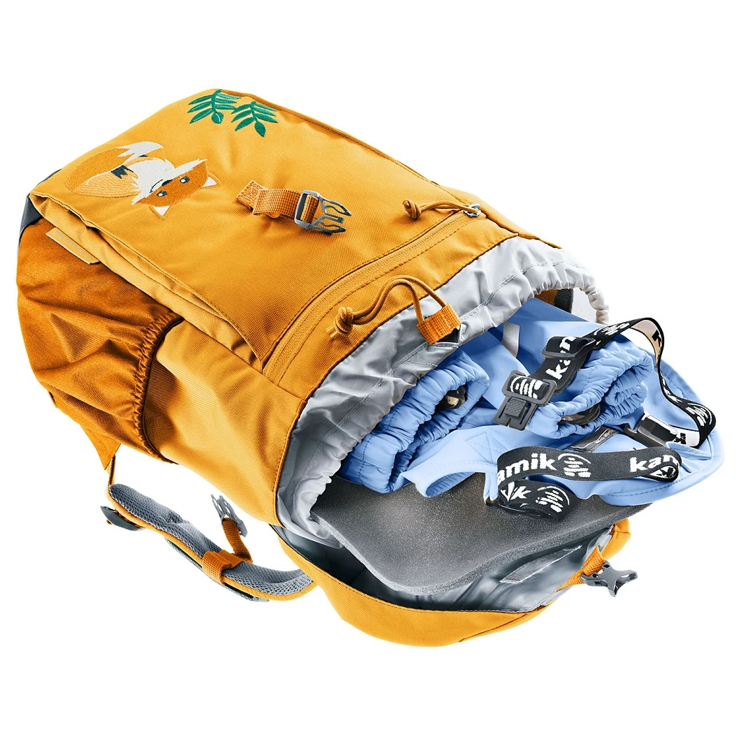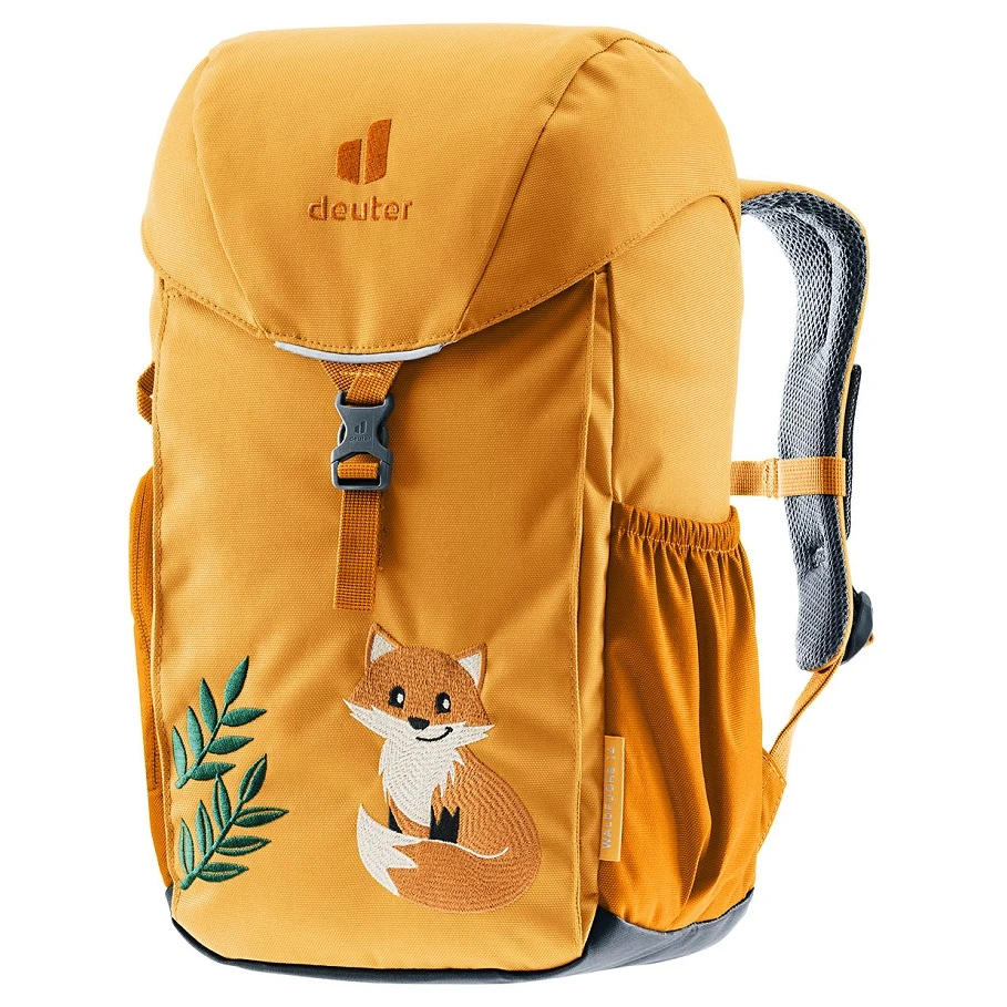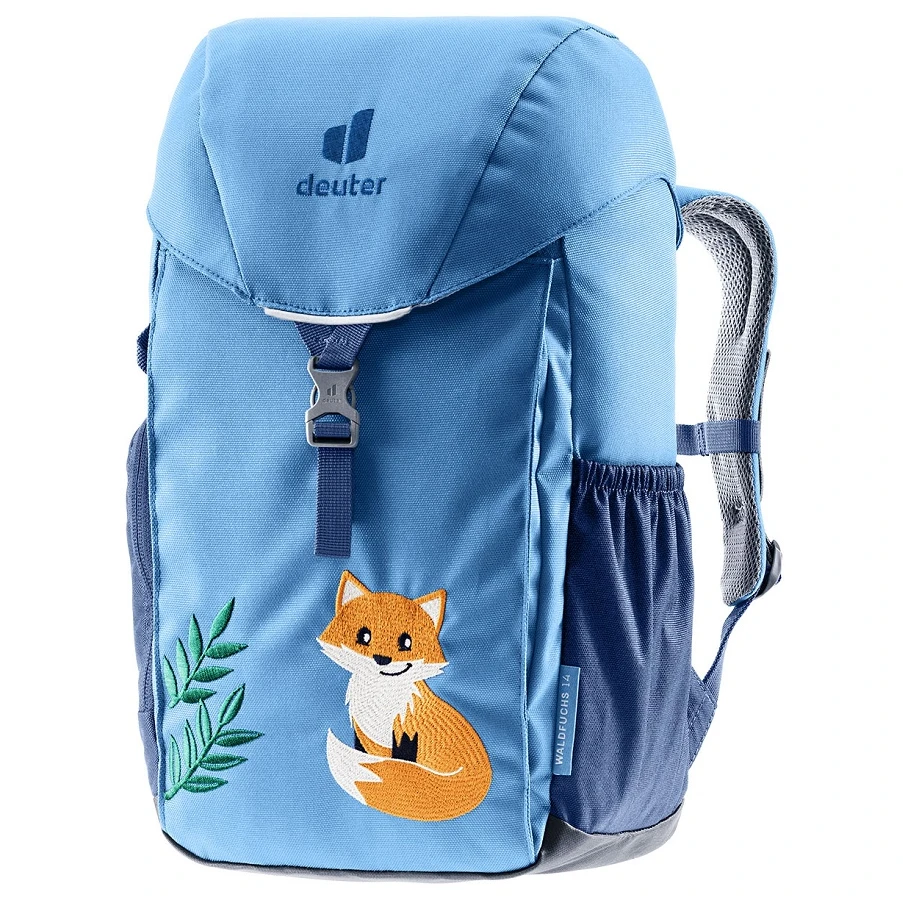 Der Waldfuchs 14 Kinderrucksack der Marke Deuter bietet hohen Tragekomfort und Bequemlichkeit, insbesondere dank des verstellbaren Brustgurtes. Der Rucksack ist geräumig, bietet ein Nasswäschefach, ein Wertsachenfach, eine Klettinnentasche, eine Klett-Fronthaube und eine Materialschlaufe an der Vorderseite.