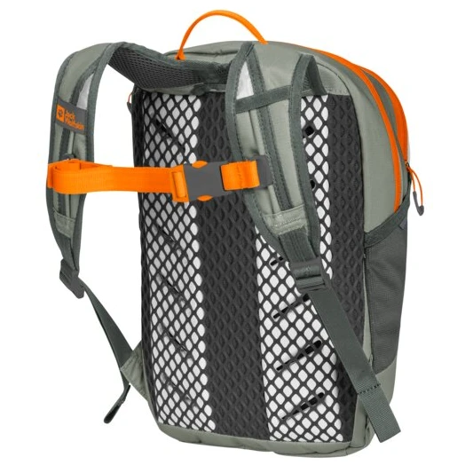 Der Rucksack Kids Moab Jam der Marke Jack Wolfskin verfügt über zwei elastische Netztaschen, ein elastisches Frontfach und eine Reißverschlusstasche mit Karabiner. Bequem gepolsterter Hüftgurt, Schultergurte und Brustgurt.