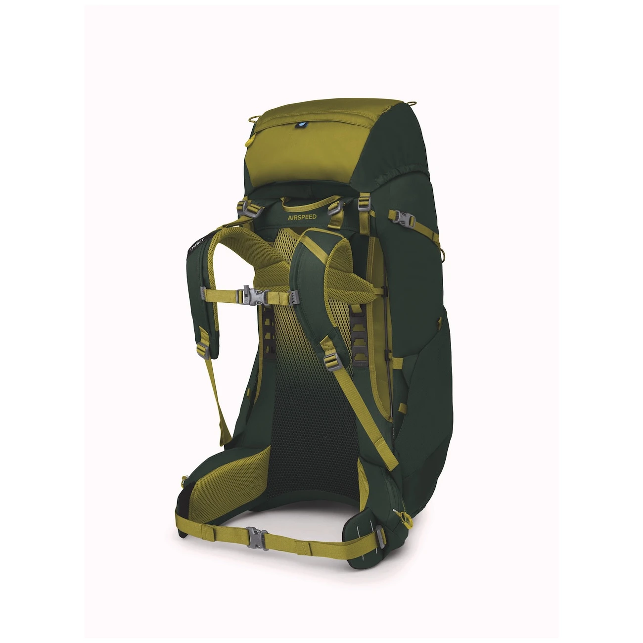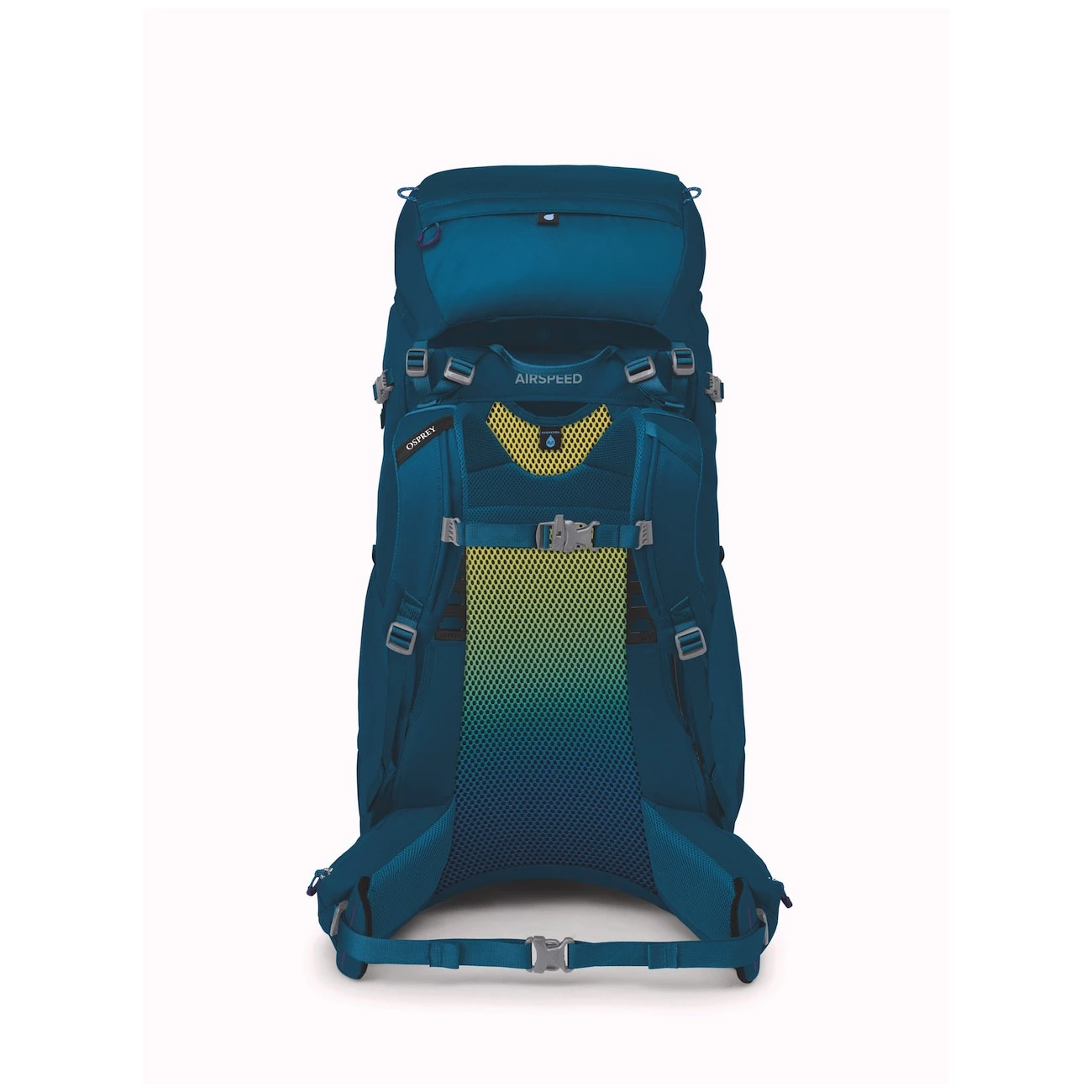 Der Rucksack lässt sich von oben befüllen und hat einen Deckel. Sie betreten es durch eine breite Hauptöffnung und finden im Inneren eine große Kammer. Das zweite Reißverschlussfach befindet sich ganz unten und eignet sich optimal für einen Schlafsack. Zwischen den Kammern befindet sich eine herausnehmbare Trennwand. Der Rucksack verfügt außerdem über eine Reißverschlusstasche oben, elastische Seitentaschen, eine große Fronttasche und Reißverschlusstaschen am Hüftgurt. Gurte an der Außenseite ermöglichen die Befestigung einer Isomatte oder anderer Ausrüstung
