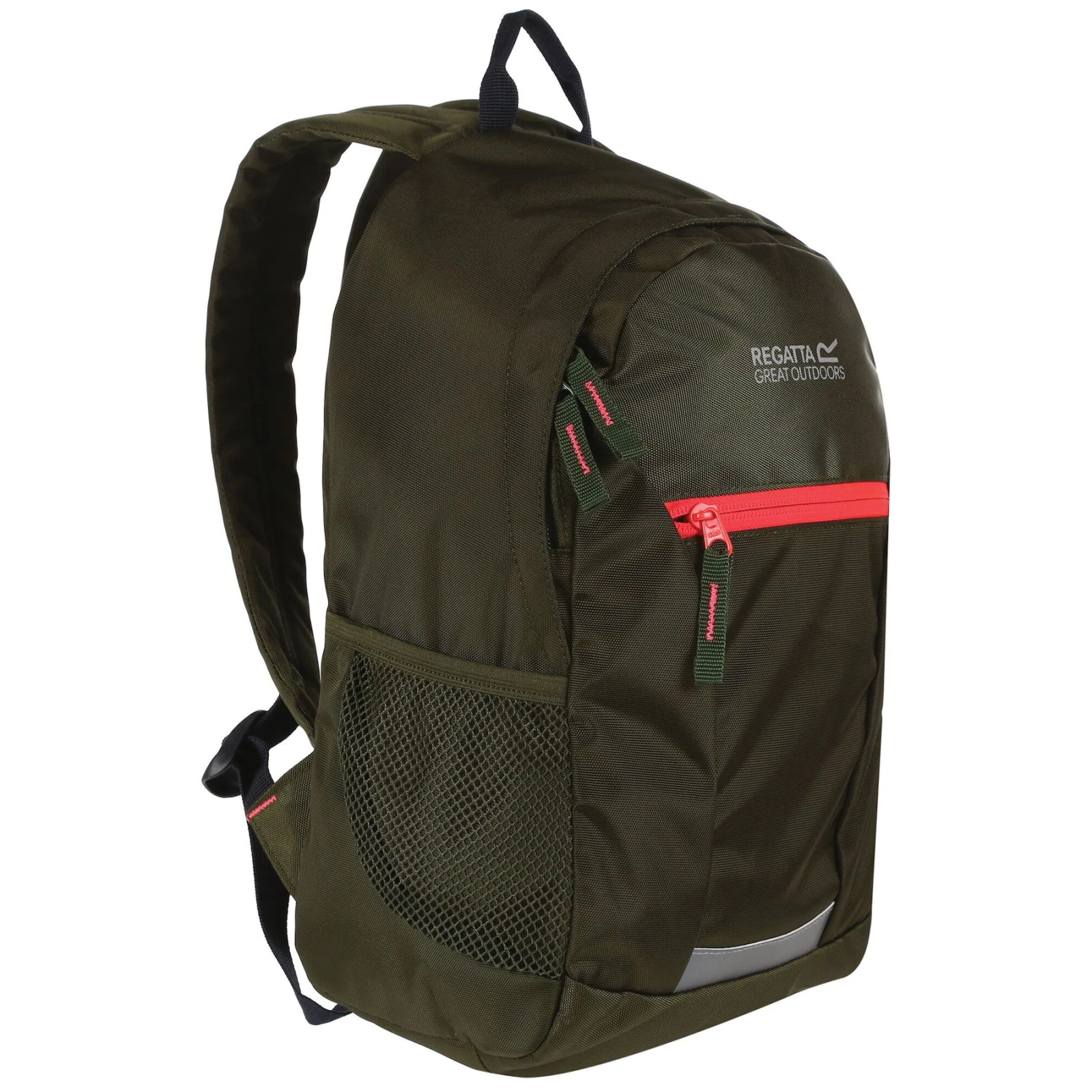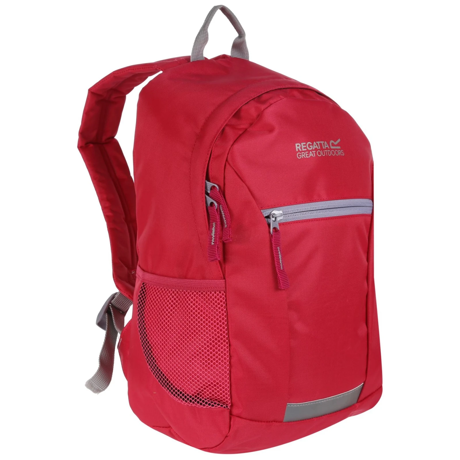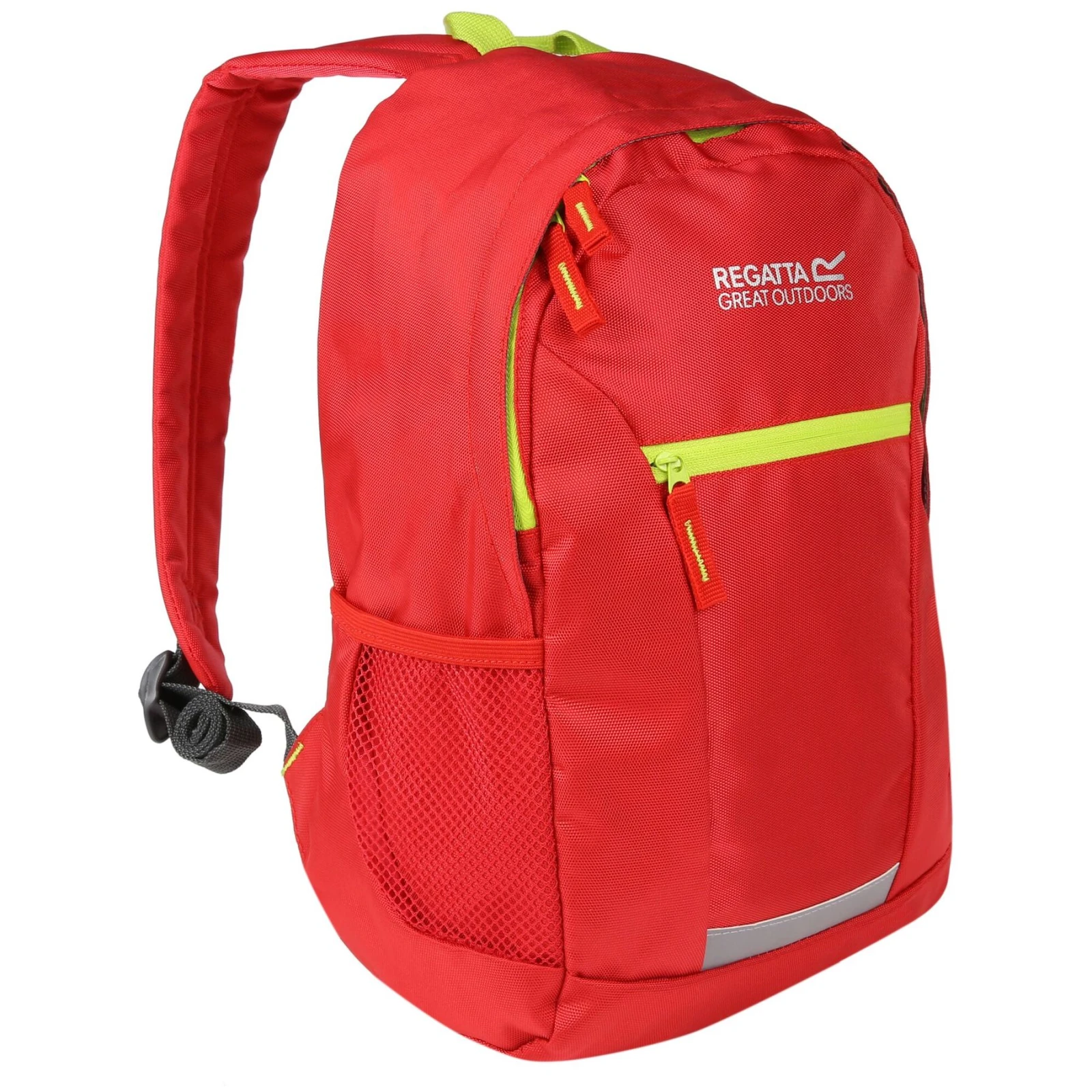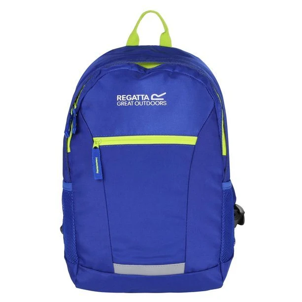 Kinderrucksack Regatta Jaxon III mit 10 Litern Fassungsvermögen in schöner Farbe und originellem Design. Der Rucksack besteht aus strapazierfähigem Polyestergewebe und hat verstellbare, gepolsterte Riemen. Der Vorteil liegt in der kleineren Fronttasche für Schlüssel und andere Kleinigkeiten. Außerdem verfügt es über ein Hauptfach mit Reißverschluss, zwei seitliche Netztaschen, reflektierende Elemente und eine Aufhängeschlaufe.