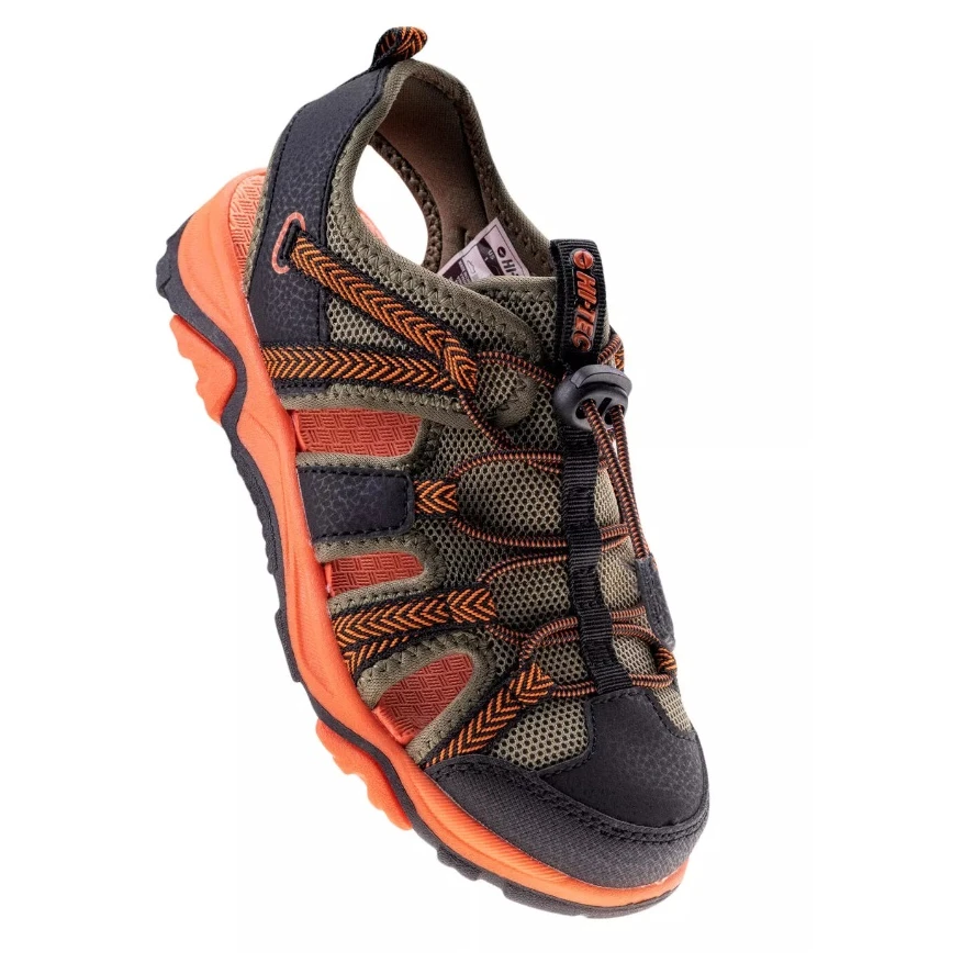 Kindersandalen Hi-Tec Sanev Jr ist nicht nur eine tolle Sommersandale, die Kinder überall tragen können, sondern auch ein passender bequemer Wechselschuh. Dank der elastischen Schnürung ist ein leichtes An- und Ausziehen möglich.Die geschlossene Ferse ermöglicht Bewegungen auch in anspruchsvollerem Gelände.