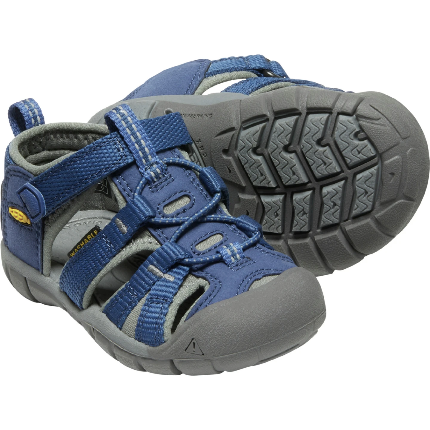 Kindersandalen Seacamp II CNX von Keen werden mit der Technologie Keen hergestellt.Cnx und zeichnen sich vor allem durch ihre Leichtigkeit und Wasserbeständigkeit aus. Die Sandalen sind flache, universelle Sommerschuhe, die für alle Aktivitäten von Kindern geeignet sind, einschließlich Wasseraktivitäten. Durch die Schnellschnürung mit Klettverschluss hält er den Fuß fest am Platz und beugt unangenehmen Verletzungen vor. Die Innensohle und das Futter sind mit antibakteriellen Mitteln versehen, um ein gesundes Klima im Schuhinneren aufrechtzuerhalten. Außerdem verfügen diese Schuhe über einen patentierten Zehenschutz der Marke Keen.