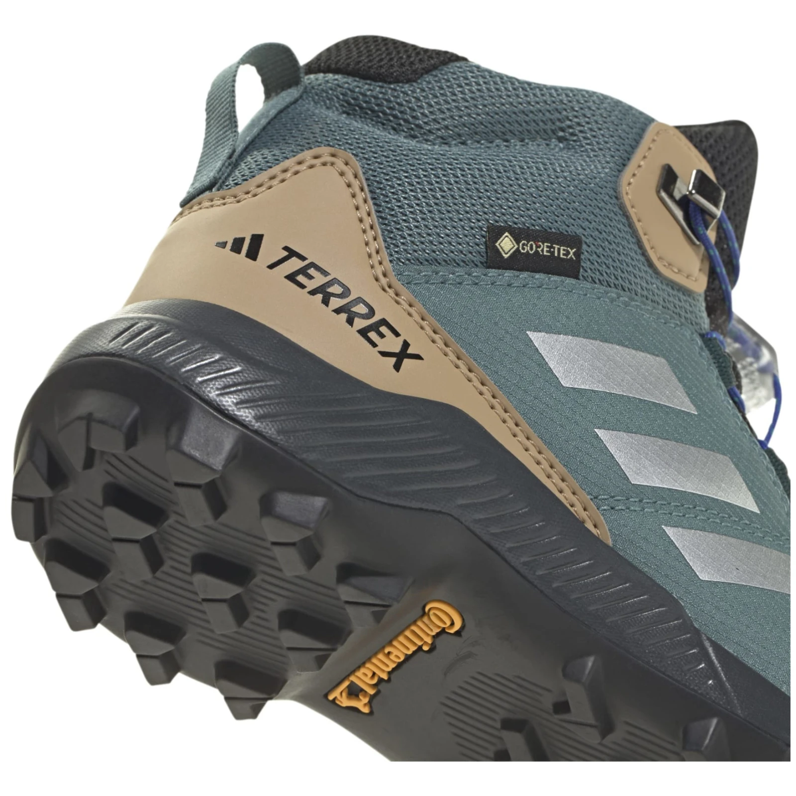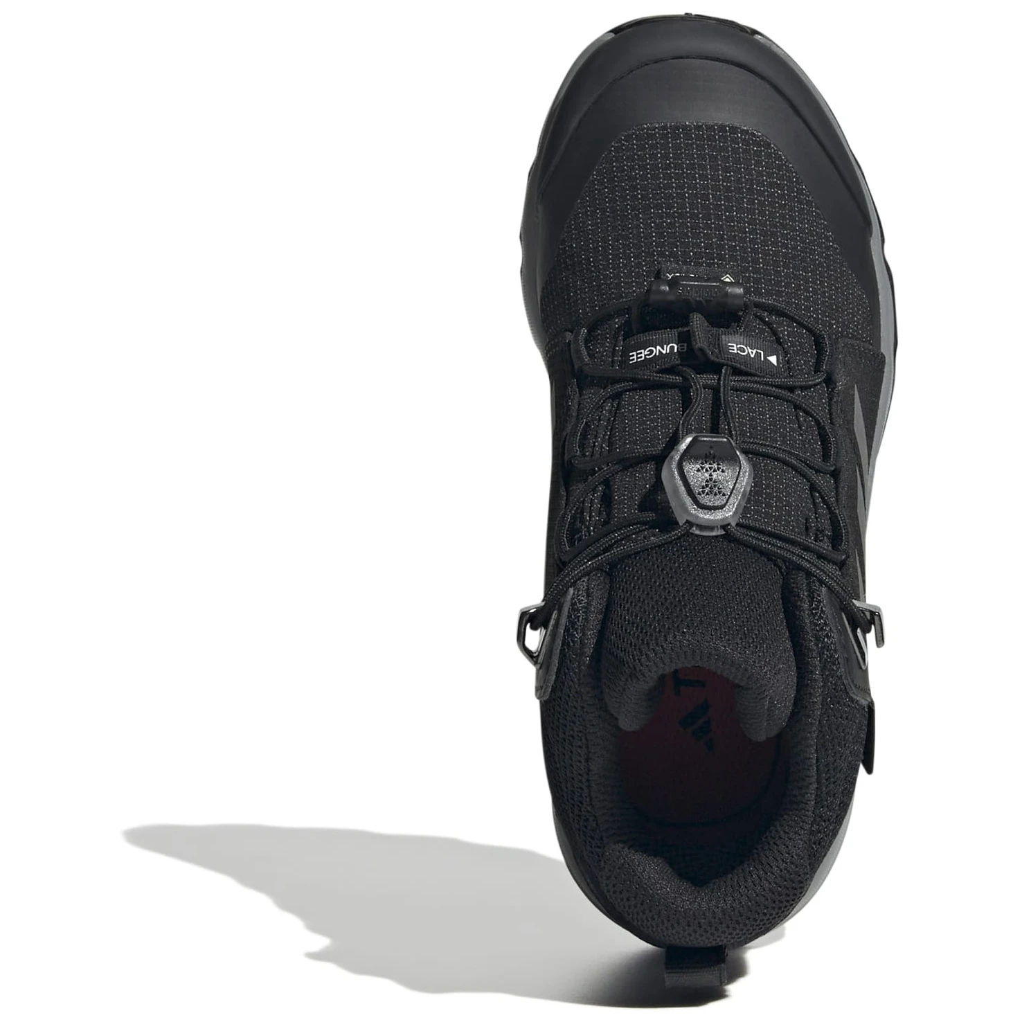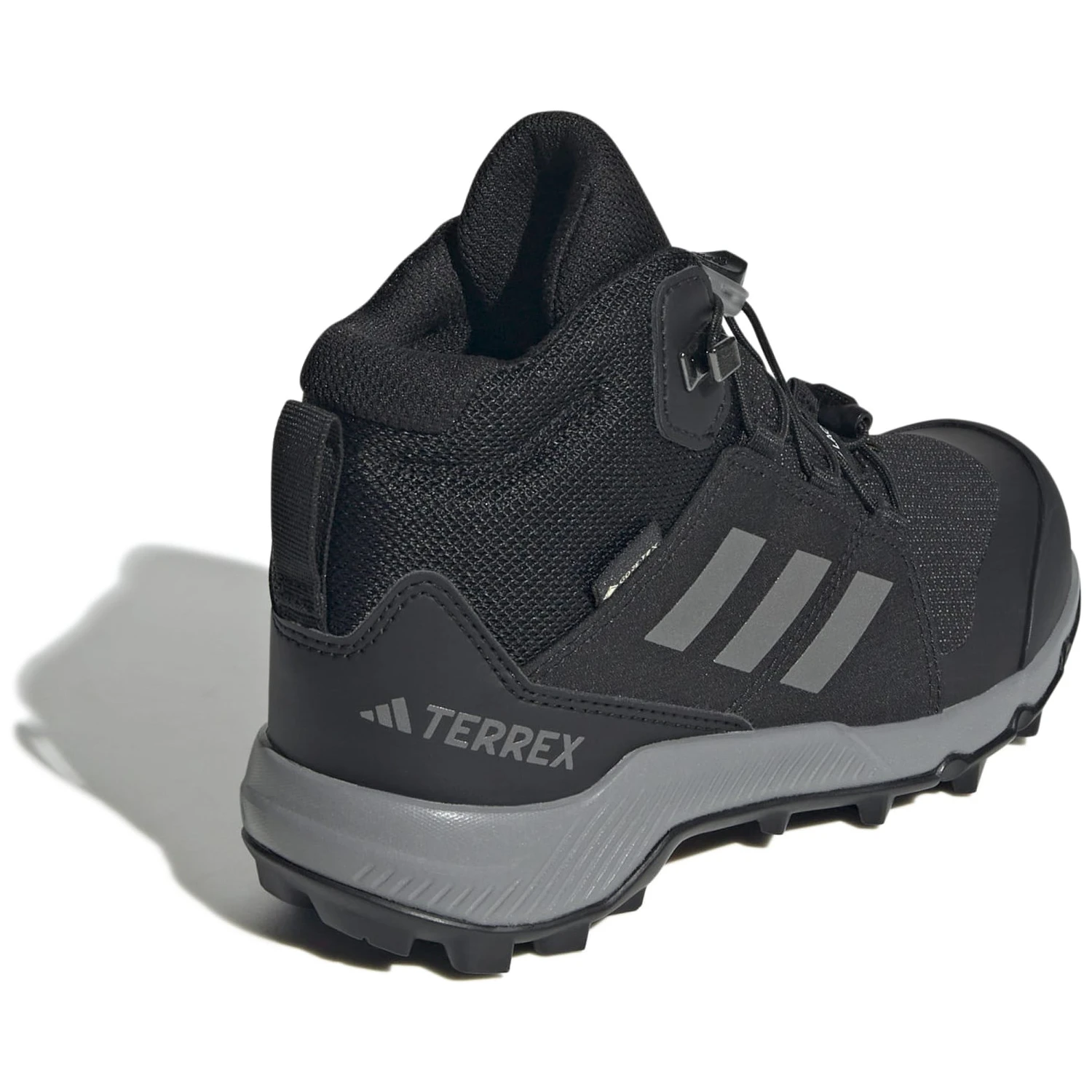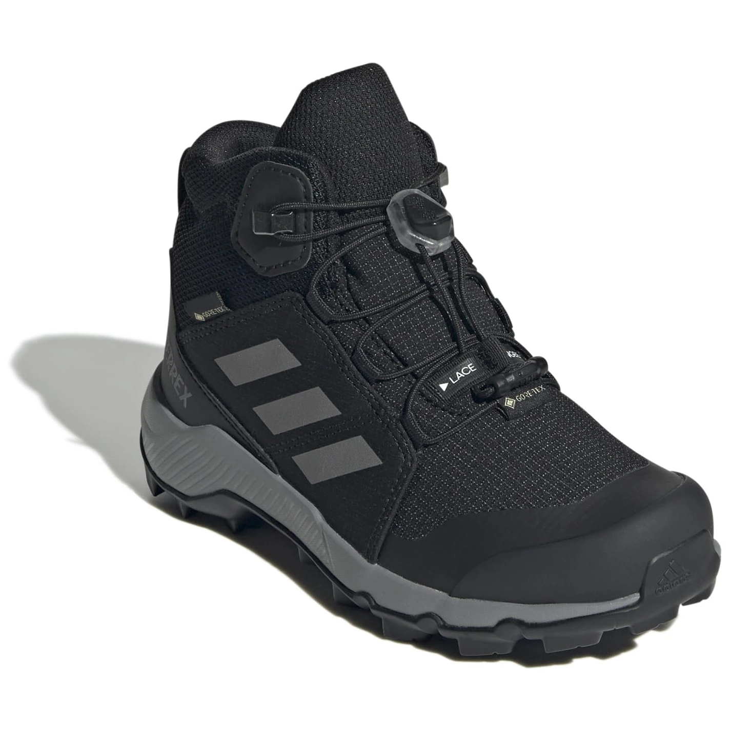 Kinder-Wanderschuh Adidas Terrex Mid GTX K mit einer GORE-TEX-Membran schützt die Füße vor Feuchtigkeit. Komfort, Haltbarkeit und recycelte Materialien für kleine Entdecker.