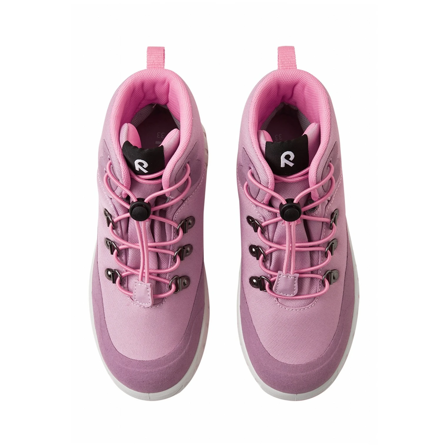 Kinderstiefelette Wetter 2.0 der Marke Reima mit Reimatec-Membran. Das Obermaterial der Schuhe besteht aus atmungsaktivem wasserdichtem Synthetikmaterial und Textil und die Sohle besteht aus flexiblem Polyurethan. Die Schuhe verfügen über ein Baumwollfutter und herausnehmbare Innensohlen mit Textiloberfläche und Happy Fit-Aufdruck, was die Wahl der optimalen Schuhgröße erleichtert. Das Produkt enthält keine fluorierten Verbindungen oder tierischen Materialien.