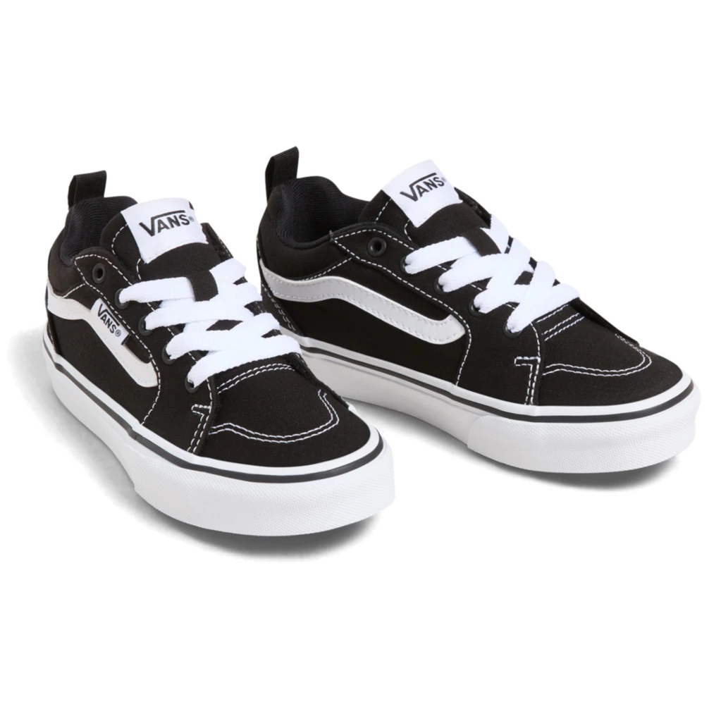 Die Schuhe Vans Filmore sind eine tolle Wahl für kleine Skateboard-Fans, aber auch für den Alltag. Diese Sneaker verfügen über das kultige Vans Sidestripe™-Logo und bieten Komfort mit gepolsterter Zunge und Kragen. Die vulkanisierte Konstruktion sorgt für Flexibilität und Haltbarkeit, während die originale Waffel-Außensohle allen kleinen Abenteurern hervorragenden Halt bietet.