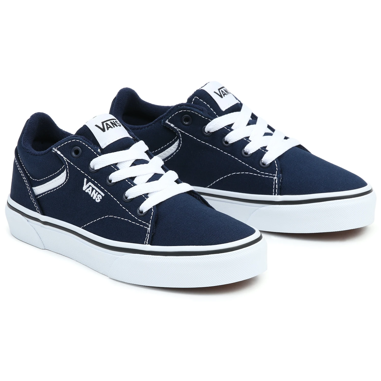 Sneaker, die Ihre Kinder sofort lieben werden, sind die Seldan der Marke Vans. Die Schuhe sind eine perfekte Wahl für den Alltag, wobei Ihre Kinder das coole Designsicherlich zu schätzen wissen werden. Sie haben eine langlebige vulkanisierte Waffelsohle und ein Obermaterial aus Canvas, das sich nicht abnutzt, selbst wenn Ihr Kind im Skatepark wild herumtobt. Das Obermaterial sticht durch die markanten Nähte hervor und zudem ist darauf das Logo der beliebten Marke zu finden!