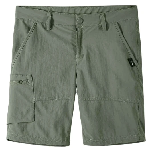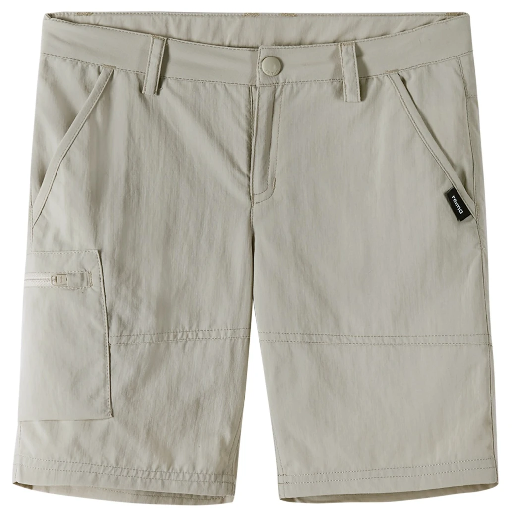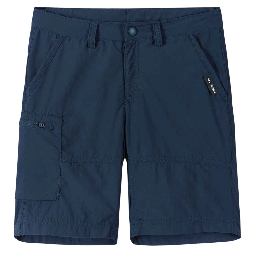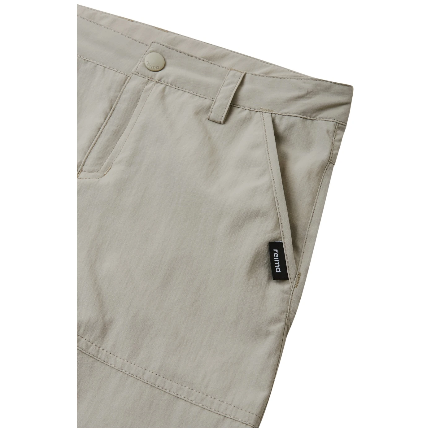 Leichte Shorts mit Beinlänge über dem Knie Reima Eloisin bestehen aus 100 % Polyamid. Das verwendete Material enthält zertifizierte Recyclingfasern und verfügt über einen UV-Schutzfaktor von 50+. Es ist pflegeleicht, leitet Feuchtigkeit gut von der Haut ab und trocknet schnell. Die Shorts haben einen elastischen, verstellbaren Bund mit Klett- und Druckknopfverschluss. Sie verfügt über zwei seitliche Eingrifftaschen auf der Vorderseite und eine weitere auf den Oberschenkel aufgenähte Tasche mit Reißverschluss.