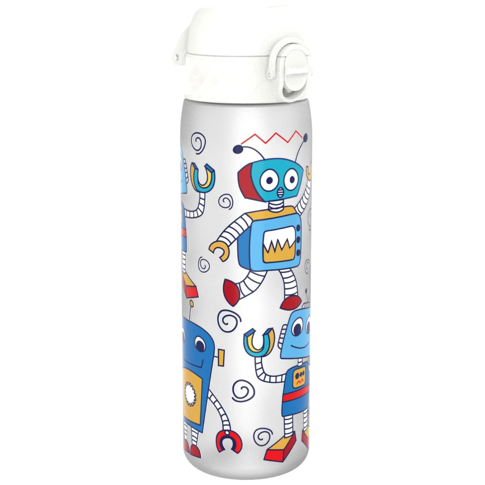 Hochwertige, auslaufsichere Flasche Ion 8 Leak Proof Robots 500 ml mit originellem, preisgekröntem Funktionsdesign. Kinder werden das fröhliche Design lieben. Sie werden die Flasche zu jeder Tageszeit zu Hause, auf Reisen, auf dem Spielplatz und bei längeren Autofahrten zu schätzen wissen.