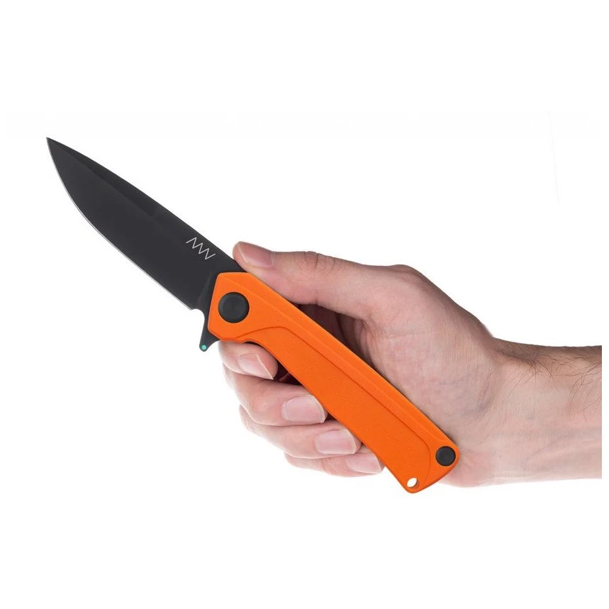 Die glatte Klinge mit DLC-Behandlung besteht aus sehr starkem und langlebigem österreichischen Stahl Böhler N 690 , der fest in einem Verbundgriff aus G 10 -Material sitzt. Der mit ANV Lumi Dot ausgestattete Flipper sorgt für einfaches und schnelles Öffnen des Messers. Der Liner Lockverhindert ein unbeabsichtigtes Schließen der Klinge. Das Messer wurde in der Tschechischen Republik hergestellt.