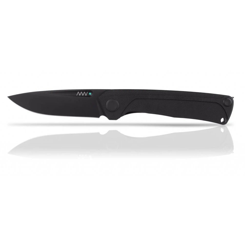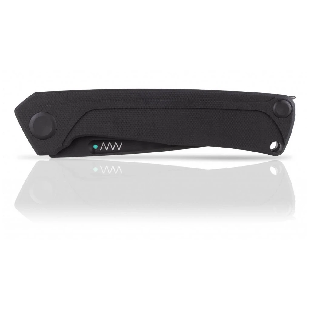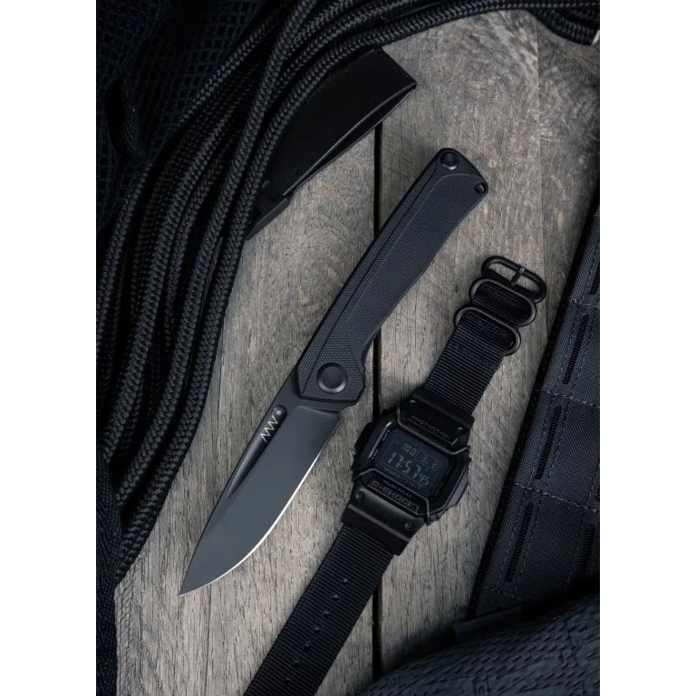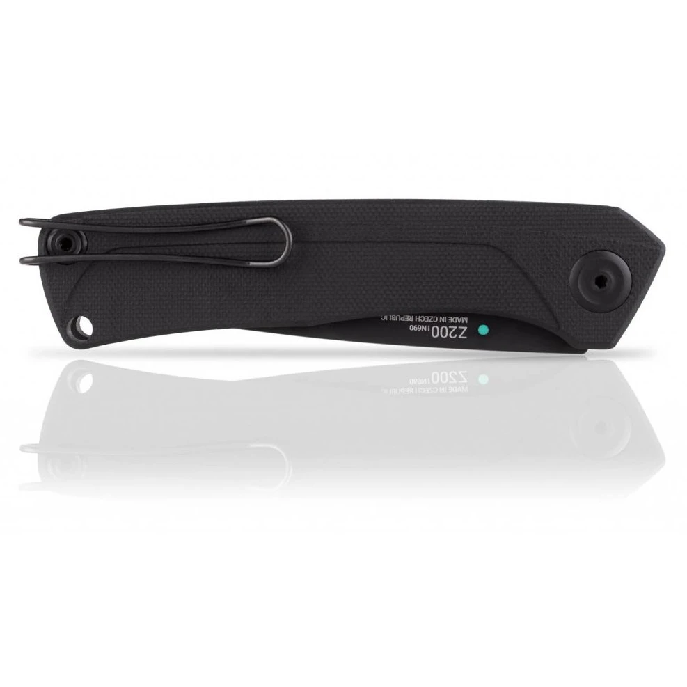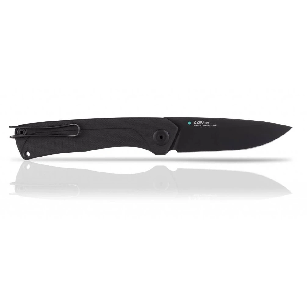 Die glatte Klinge mit DLC -Behandlung besteht aus sehr starkem und langlebigem österreichischen Stahl Böhler N 690 , der fest in einem Verbundgriff aus G 10 -Material sitzt. Neu ist eine in die Klinge eingefräste Nut mit Leuchtpunkt, die ein leichtes und diskretes Öffnen der Klinge ermöglicht. Das Messer ist daher für alle gedacht, die ein kontrolliertes, beidhändiges Öffnen mit Flipper bevorzugen. Der Liner Lockverhindert ein unbeabsichtigtes Schließen der Klinge. Das Messer wurde in der Tschechischen Republik hergestellt.