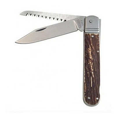 Traditionelles klappbares Jagd- Messer Mikov 232-XH-2 KP mit einer Messerklinge aus hochwertigem rostfreiem AISI 440A-Stahl mit einer Härte von 56HRC. Der konische Klingenschliff sorgt für bessere Schneidleistung und Wartung. Auch die Messergriffe sind aus widerstandsfähigem Kunststoff in Geweih-Imitation gefertigt. Das Messer ist mit einer Backlock-Sicherung ausgestattet.