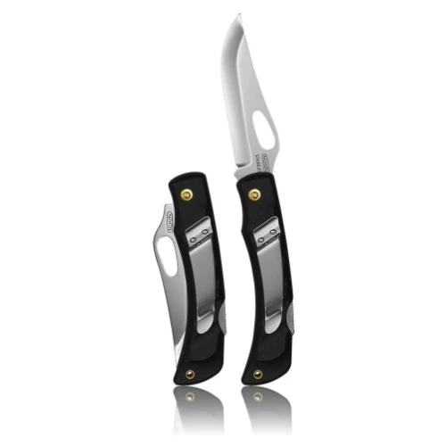 Das Messer 243-NH-1/B mit Schnalle aus der Werkstatt eines tschechischen Traditionsherstellers von Messern Mikov sollte in Ihrer Sammlung nicht fehlen. Es handelt sich um ein Alltagsmesser, welches man trotz seines geringen Gewichts kaum spürt, wenn man es bei sich trägt. Die Edelstahlklinge wird zwischen den Spateln eingesetzt und verfügt über einen Clip, mit dem Sie das Messer an Ihrem Gürtel oder Ihrer Tasche befestigen können. Um ein Zuklappen der Klinge zu verhindern, ist das Messer mit einem Back-Lock-System ausgestattet. Als Bonus gibt es im Griff ein kleines Loch, durch das Sie eine Schnur fädeln können, um das Messer aufzuhängen.
