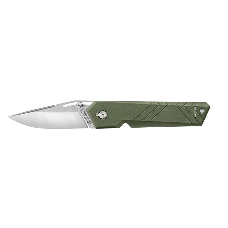 Das Unboxer Everyday Carry Knife der Marke TB OUTDOOR ist ein extrem leichtes und flaches Klappmesser, das mit Einfallsreichtum in den Werkstätten im französischen Thiers entworfen wurde. Dieses Messer vereint Diskretion und Funktionalität und seine einzigartige Kontrolle basiert auf dem einmaligen Klingendesign. Dank dieses innovativen Mechanismus kommt der Unboxer® ohne herkömmliche Federn oder Platten aus und bietet somit eine optimale Gewichtseinsparung. Die Klinge hält sowohl in der geöffneten als auch in der geschlossenen Position sicher und ermöglicht so eine sichere Verwendung.