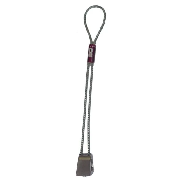 Der Granite 8-Keil vom Hersteller Rock Empire ist beim Klettern in Rissen unverzichtbar. Granit zeichnet sich durch hohe Festigkeit und geringes Gewicht aus. Es handelt sich um Duraluminiumkeile mit Stahlkabeln. Durch die gebogene Form leicht in Fugen zu platzieren.