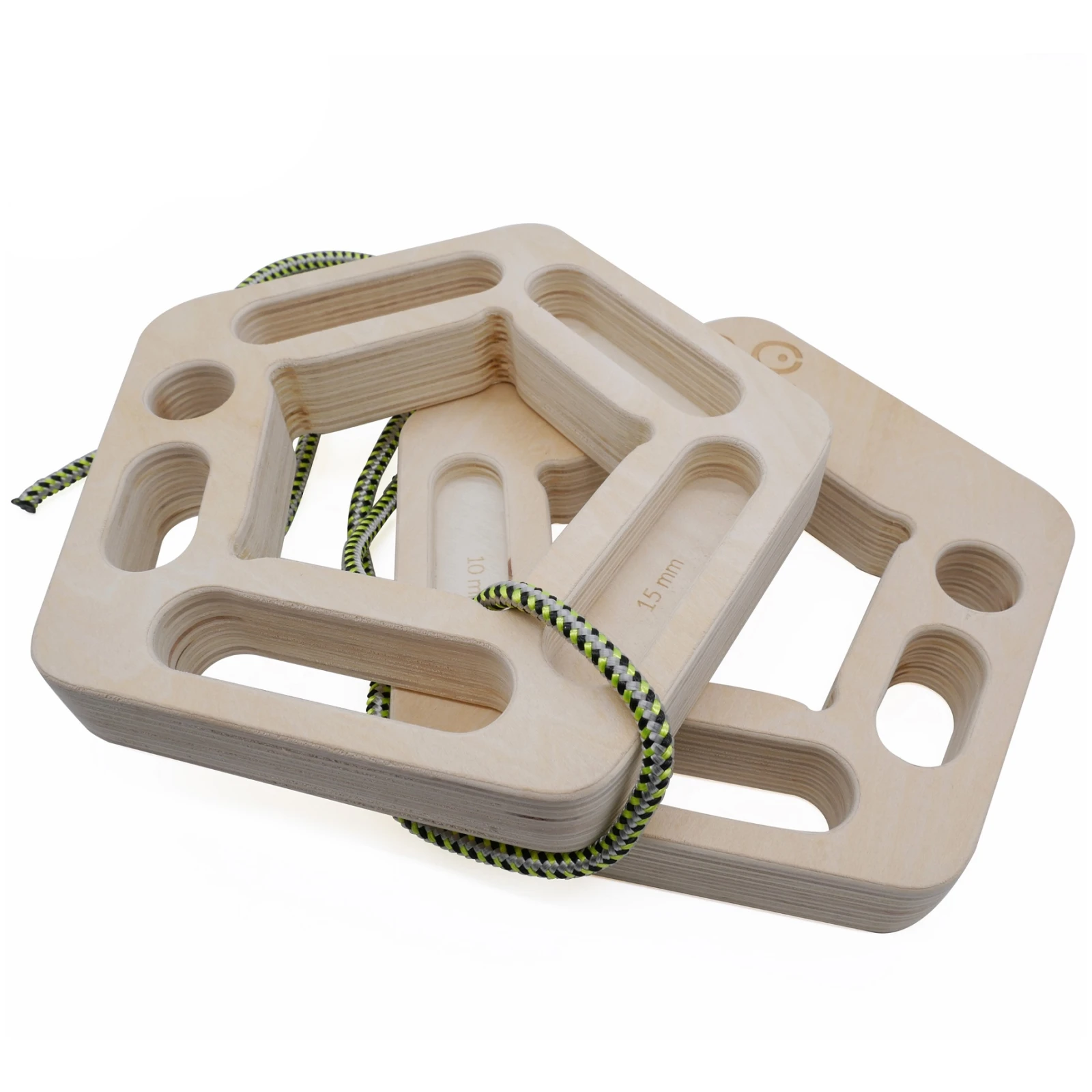 Entwickelt zum Aufwärmen und Trainieren von Hänge- und Zugübungen zur Stärkung der passiven und aktiven Strukturen der Finger, Arme und des Rückens. Sie können außerdem als instabile Unterlage zur Durchführung von Liegestützen verwendet werden. Ihre weiche Oberfläche garantiert zudem einen Grip, der Kletterer überzeugt.