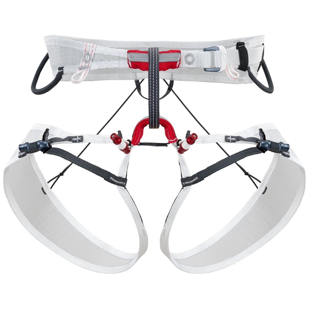 Das Umschalten zwischen den Modi ist intuitiv und sicher und kann ohne Abnehmen des Gurtzeugs und sogar mit Handschuhen durchgeführt werden. Der Gurt besteht aus anisotropem Gewebe und bietet Flexibilität und Halt bei optimaler Lastverteilung, ohne dass eine Polsterung erforderlich ist. Das Bund- und Beinmaterial stammt aus der Schifffahrt, ist 100% klimaneutral und enthält 28-39% Recyclingmaterial aus europäischer Produktion.