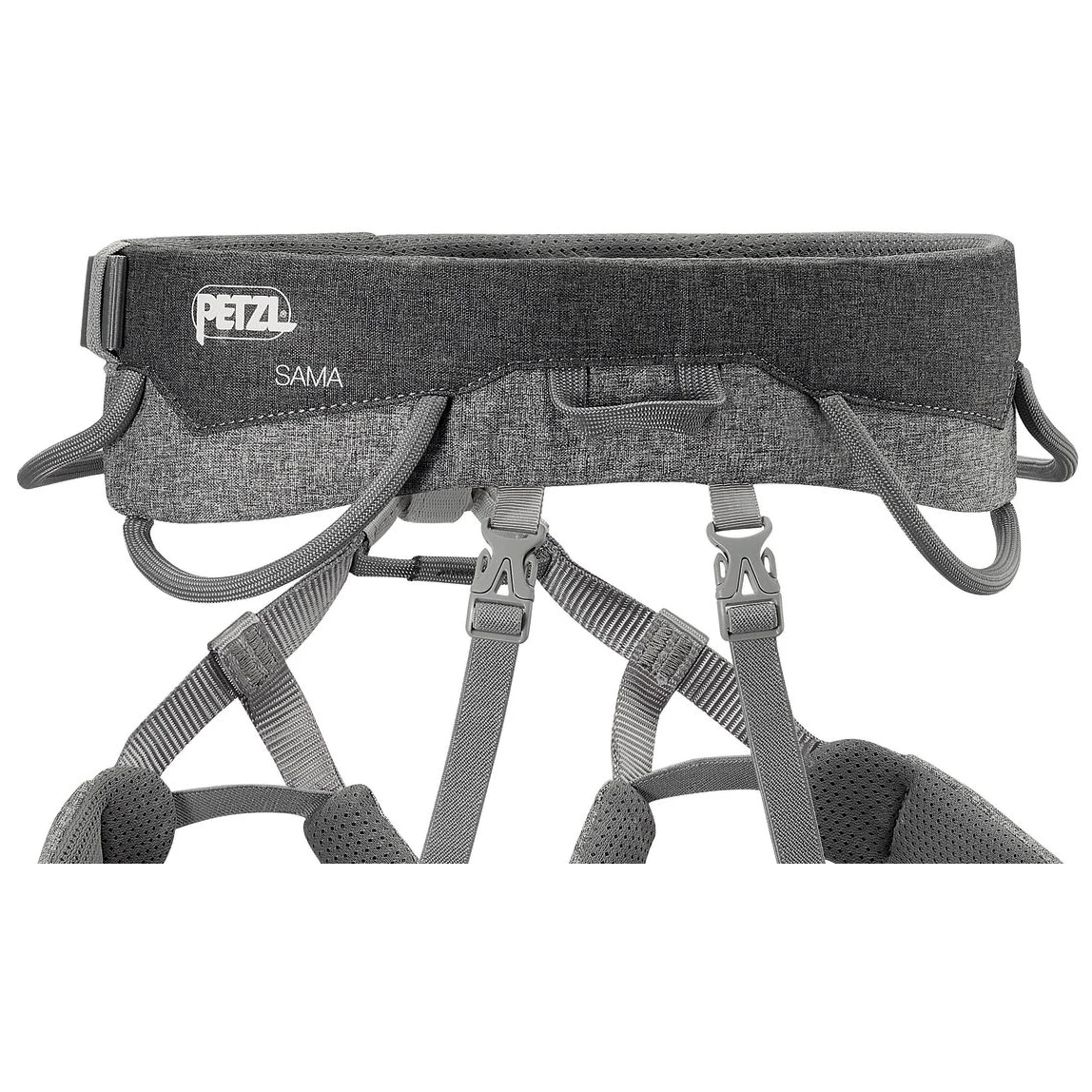Der Sport-Sitzgurt Sama Harness der französischen Firma Petzl ist sehr komfortabel, sowohl an den Hüft- als auch an den Beingurten befinden sich Polsterungen. Der breite Hüftgurt sorgt für eine bequeme Positionierung und die Konstruktion mit Endoframe-Technologie ermöglicht eine hervorragende Gewichtsverteilung.