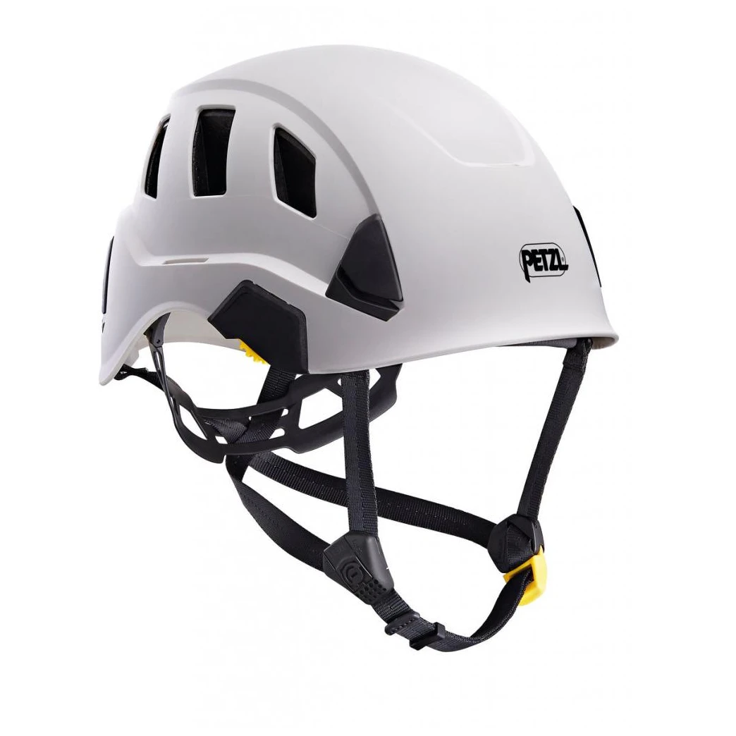 Der STRATO VENT-Helm ist dank der CENTERFIT- und FLIP & FIT-Systeme sehr leicht und gewährleistet einen sicheren Sitz des Helms auf dem Kopf. Durch den in der Stärke einstellbaren Kinnriemen kann der Helm sowohl bei Arbeiten in der Höhe als auch am Boden verwendet werden. Er verfügt über Belüftungslöcher mit Schiebern, die eine Luftzirkulation im Helm ermöglichen.
