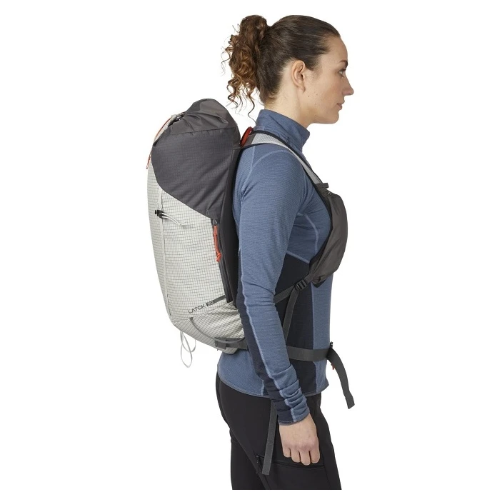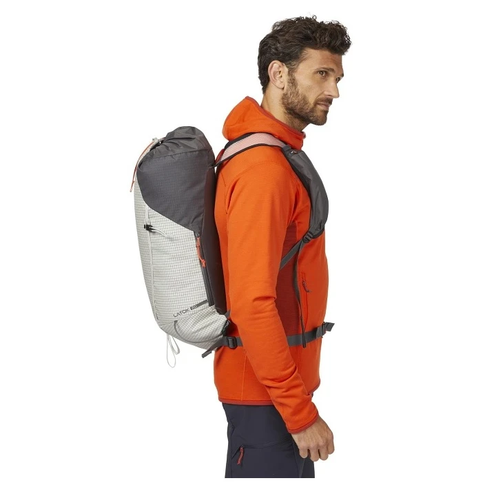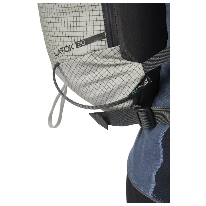 Der ultraleichte Kletterrucksack Rab Latok 20 ist äußerst strapazierfähig und zum Fels-, Mixed- und Eisklettern geeignet. Der Rucksack besteht aus extra starkem Cordura-Gewebe, das zusätzlich mit Spectra®-Fasern verstärkt ist. Die Fasern verfügen über eine 15-mal höhere Festigkeit als Stahl bei gleichem Gewicht. Der Rucksack ist durch die wasserdichte HydroShield-Beschichtung vor Regen und Schnee geschützt.