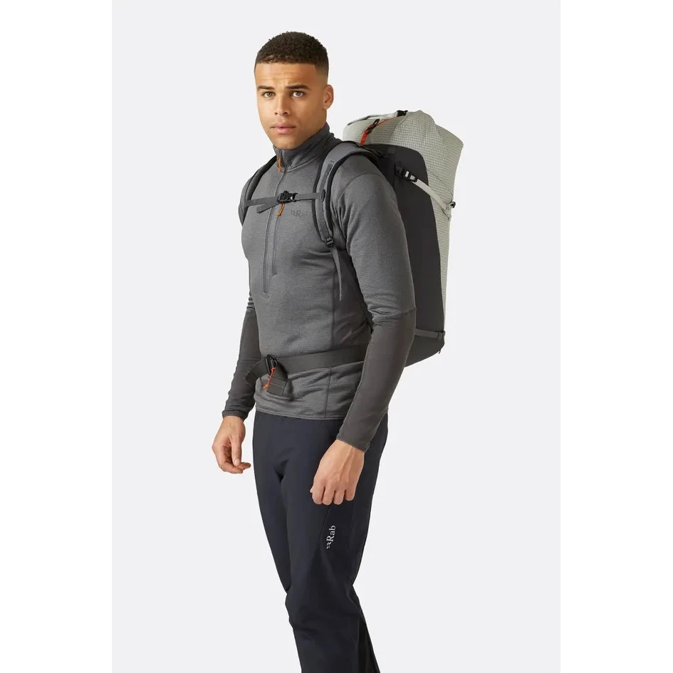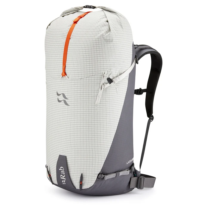 Der ultraleichte Kletterrucksack Rab Latok 28 ist äußerst strapazierfähig und zum Fels-, Mixed- und Eisklettern geeignet. Der Rucksack besteht aus extra starkem Cordura-Gewebe, das zusätzlich mit Spectra®-Fasern verstärkt ist. Die Fasern verfügen über eine 15-mal höhere Festigkeit als Stahl bei gleichem Gewicht. Der Rucksack ist durch die wasserdichte HydroShield-Beschichtung vor Regen und Schnee geschützt.