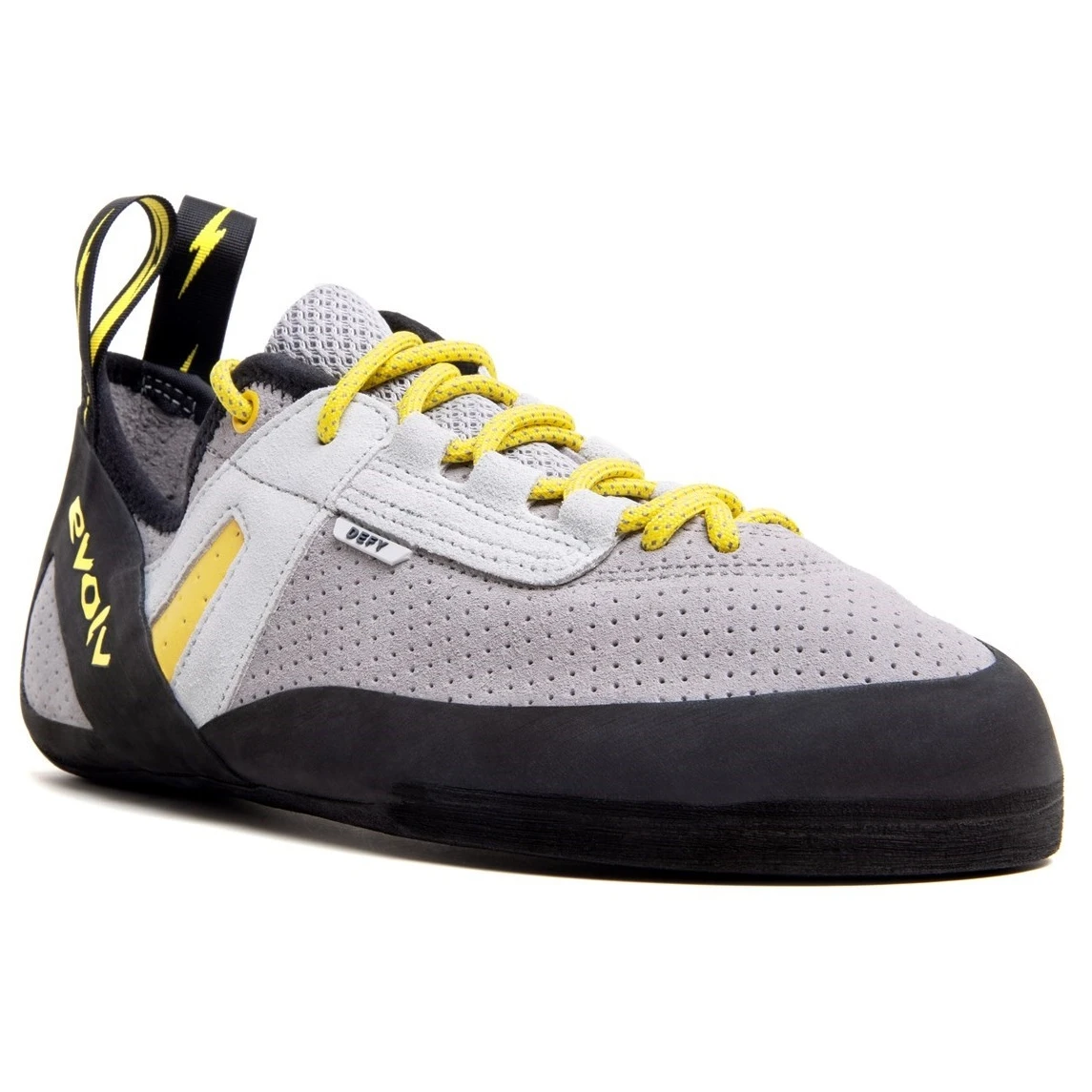Die Kletterschuhe Defy Lace der Marke Evolv eignen sich optimal zum Indoorklettern, Bouldern und sind auch zum Felsklettern geeignet. Auf Leistung ausgelegt und dennoch bequem genug, um es den ganzen Tag zu tragen.