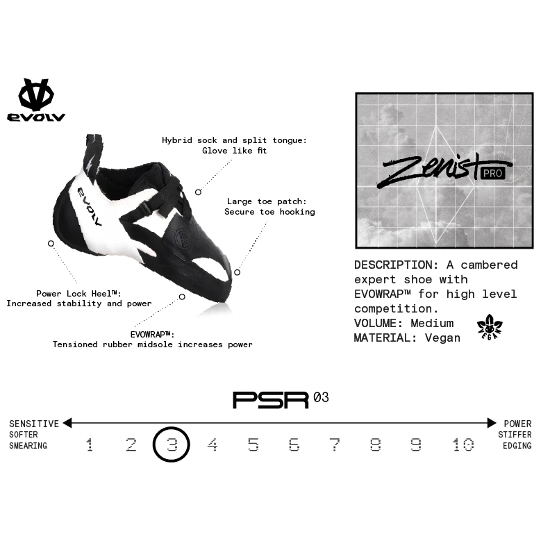 Evolv sponsert auch einige der besten und talentiertesten Kletterer und stellt eine charakteristische Reihe von Schuhen her, die von der Kletterikone Chris Sharma entwickelt wurden. Im Jahr 2019 reihte sich die Marke in das Unternehmen Oberalp ein, zu dem weitere große Outdoor-Marken wie Salewa, Dynafit, Pomoca und Wild Country gehören.