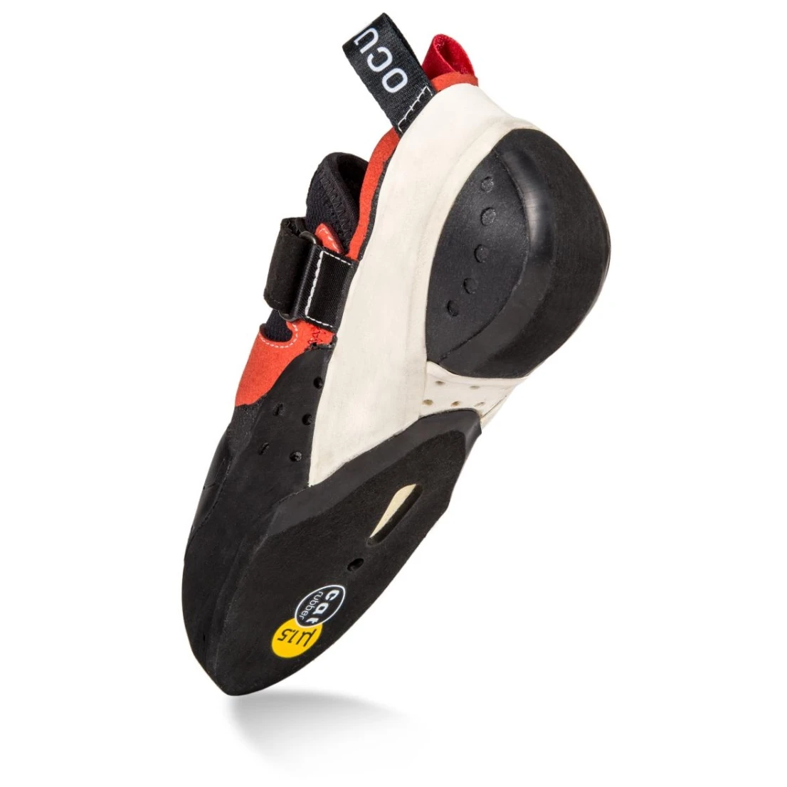 Weiche, sensible Kletterschuhe Iris von Ocún mit schmaler Passform zum Bouldern und Indoor-Klettern. Es eignet sich hervorragend für überhängende Pfade und Reibungsstufen.