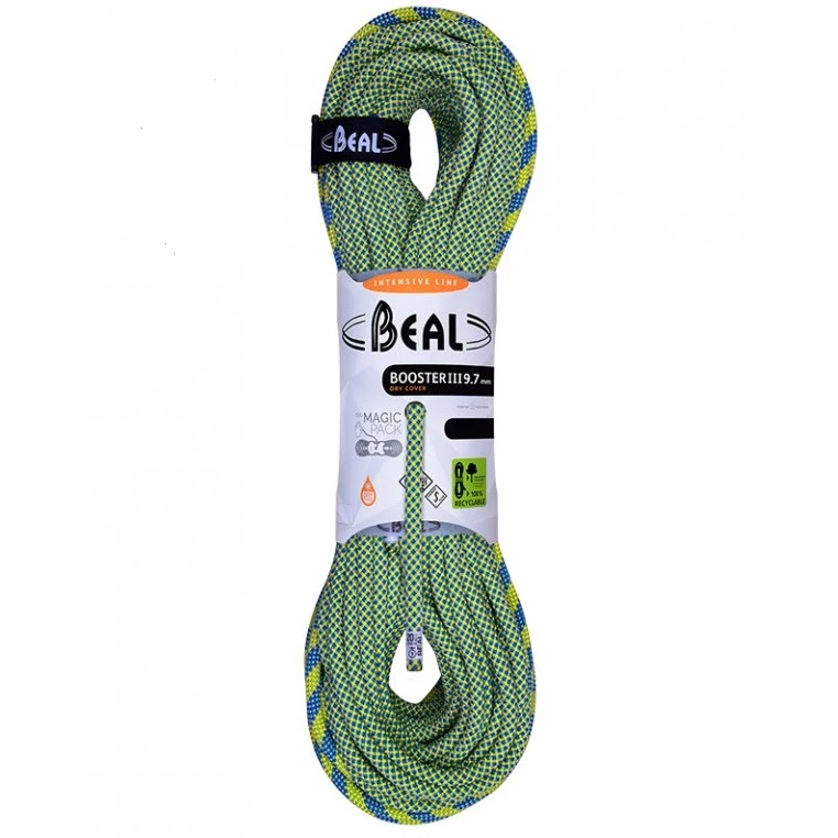 Das Booster Unicore 9,7 mm der Marke Beal ist ein universelles Kletterseil mit einer Länge von 70 Metern, und gehört zu den ersten dünnen Seilen, das eine hohe Festigkeit und Haltbarkeit bei gleichzeitig geringem Gewicht und einfacher Handhabung bietet. Im Vergleich zu anderen, einfacheren Seilmodellen wurde beim Booster III die Modifikation Unicoreverwendet, die aus einer festen Verbindung des imprägnierten Geflechts mit dem Kernbesteht und dadurch eine noch höhere Abriebfestigkeit, selbst bei Stürzen über eine scharfe Kante, erreicht. Das Seil garantiert nicht nur eine hohe Sicherheit, sondern auch eine deutliche Sturzdämpfung dank geringer Fangstoßkraft . Das Seil ist für alle erfahrenen Kletterer zum Sportklettern in Fels und Schnee geeignet.