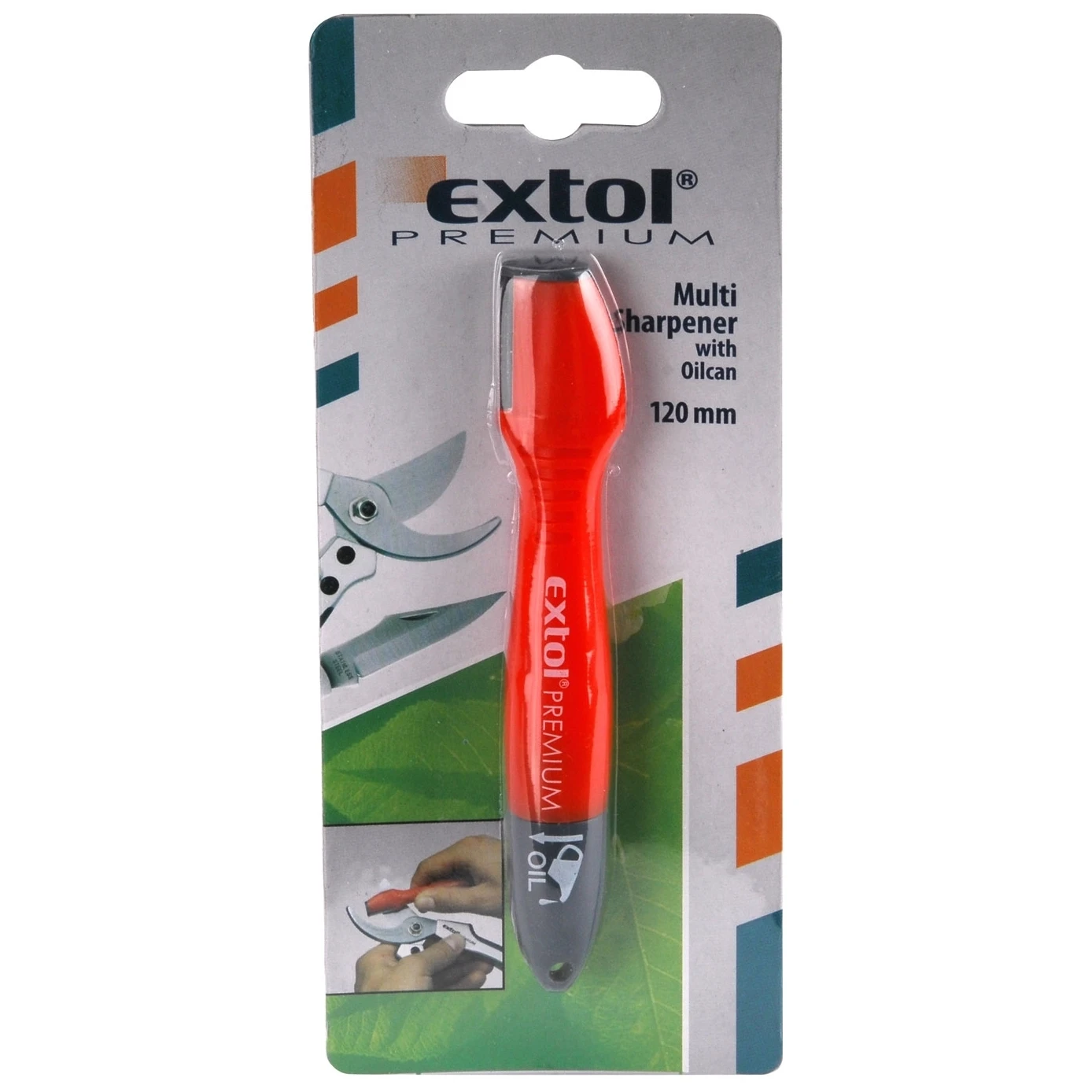 Der Messerschärfer Extol ist ein unverzichtbares Accessoire, das in keinem Haushalt fehlen sollte. Sie können es für alle Arten von Scheren und Messern verwenden. Der Öler ist im Griff des Spitzers versteckt.
