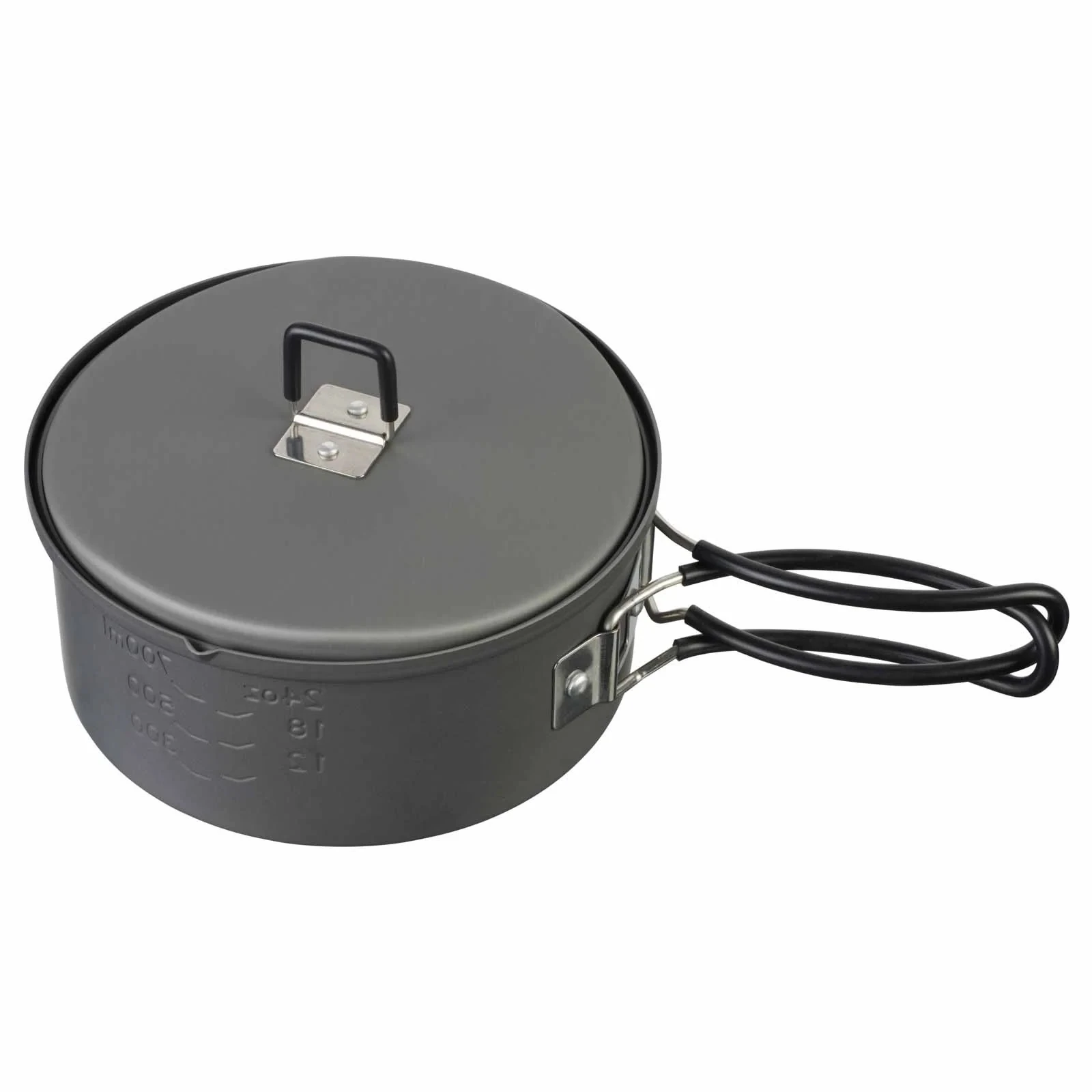 Eine kleine Verpackungsgröße ist entscheidend, wenn Sie unterwegs sind. Denn der Platz im Rucksack ist begrenzt. Aus diesem Grund sind die Griffe des Herdes klappbar. Zum Schutz vor Hitze sind sie außerdem mit Silikon beschichtet . Für den Transport passt der Ständer in den Topf. Der Deckel des Campingkochbuchs verfügt an der Unterseite über eine Aufhängung. Dadurch können Sie den Deckel während des Kochens am Topfrand einhaken. So bleiben beim Kochen die Hände frei und der Deckel sauber.