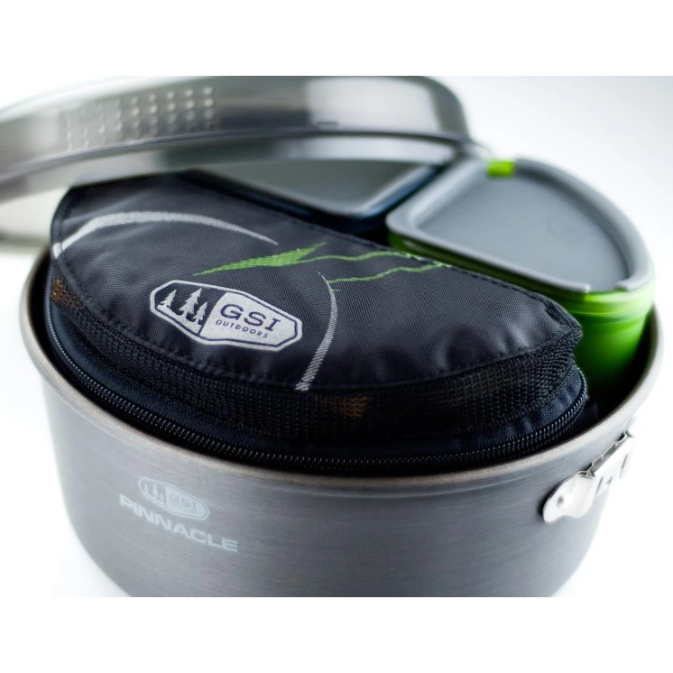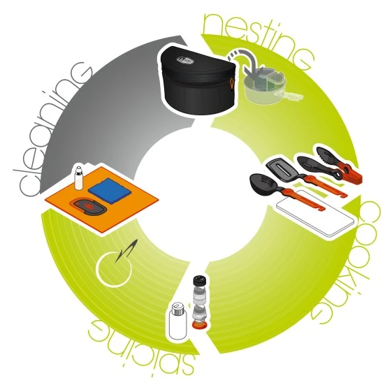 Küchenset Das Crossover Kitchen Kit der Outdoor-Marke GSI Outdoors beinhaltet 12 Utensilien für die einfache Zubereitung jeglicher Köstlichkeiten. Ordentlich organisiert in einer leichten und kompakten Tasche, in der alles übersichtlich und griffbereit bleibt.