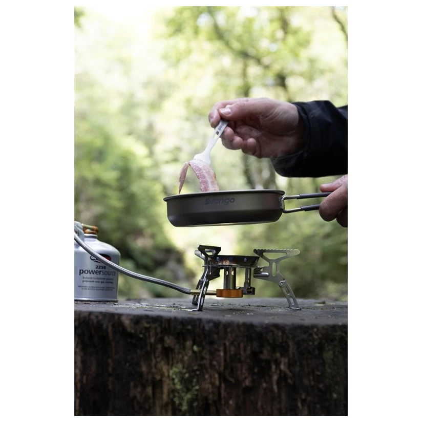 Das zweiteilige Vango Titanium-Kochset ist ein kompaktes und leichtes Kochgeschirrset aus medizinischem Titan, das 45 % leichter als Stahl ist und das beste Festigkeits-Gewichts-Verhältnis aller Metalle aufweist. Das Set umfasst einen 680 ml Topf und eine 500 ml Pfanne, die eine hohe Temperaturbeständigkeit und effiziente Wärmeübertragung bieten, sodass Speisen schnell erhitzt werden, während die Griffe kühl bleiben. Die nahtlose Titanformung gewährleistet ein robustes und langlebiges Design.