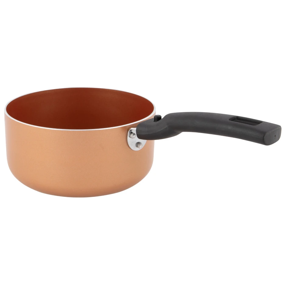 Kompakter Tellefson Topf Ø16cm der Marke Bo-Camp mit Keramikoberfläche und abnehmbarem Griff. Ideal für alle Herdarten und leicht zu verstauen.