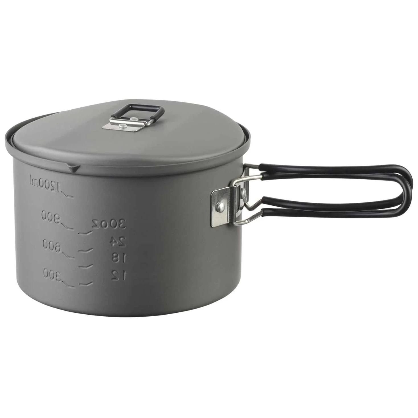 Der 1,6-L-Aluminiumtopf ist hitzebeständig und hat einen klappbaren Edelstahlgriff mit Silikonbeschichtung für einen bequemen Halt.