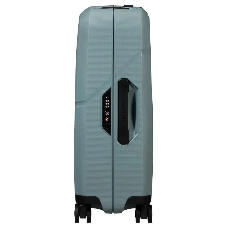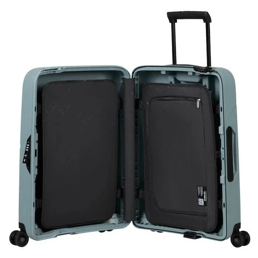 Samsonite Der Magnum Eco Spinner 55 ist ein innovatives Handgepäck für moderne Reisende, denen Nachhaltigkeit am Herzen liegt. Die Außenseite des Koffers besteht aus recyceltem Polypropylen , das aus gebrauchten Joghurt- und Eisbechern gewonnen wird, während das Innenfutter aus recycelten PET-Flaschen besteht. Diese Materialkombination sorgt nicht nur für Umweltfreundlichkeit, sondern auch für hohe Haltbarkeit und geringes Gewicht des Koffers.