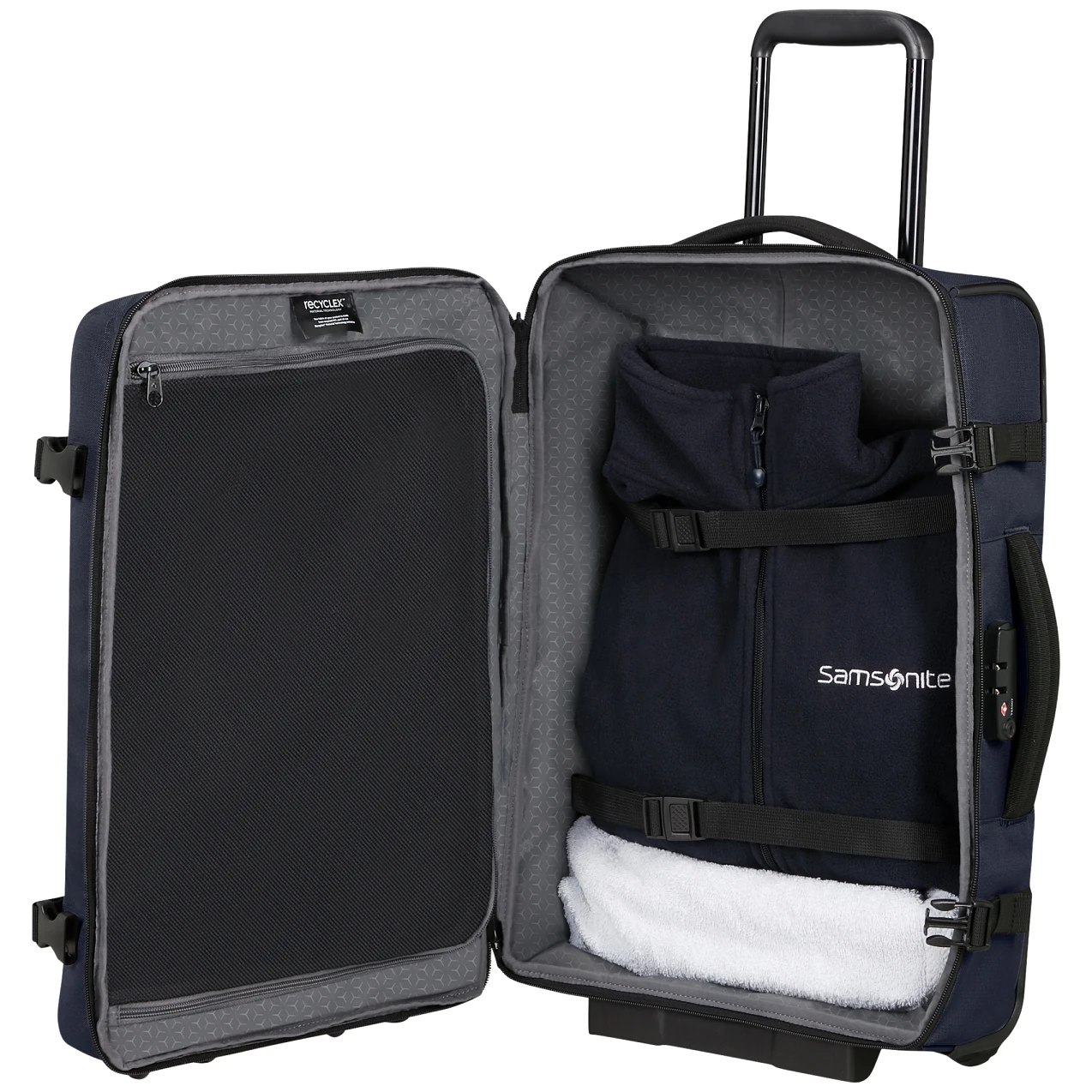 Bleiben Sie stilvoll und halten Sie Ihre Sachen während Ihrer Reise organisiert. Die Reisetasche Roader Duffle vom Hersteller Samsonite mit einem Volumen von 39,5 Litern ist für aktive und urbane Reisende konzipiert. Um die Umweltbelastung zu reduzieren, besteht die Tasche zu 100 % aus recyceltem Stoff aus PET-Flaschen. Für den einfachen Transport gibt es einen abnehmbaren Schultergurt und dank seiner Größe kann er sogar mit an Bord eines Flugzeugs genommen werden.
