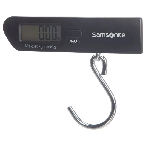 Digitale Gepäckwaage Samsonite Die digitale Gepäckwaage ist ein kompaktes und genaues Gerät, mit dem Sie auf Reisen Übergepäckgebühren vermeiden können.