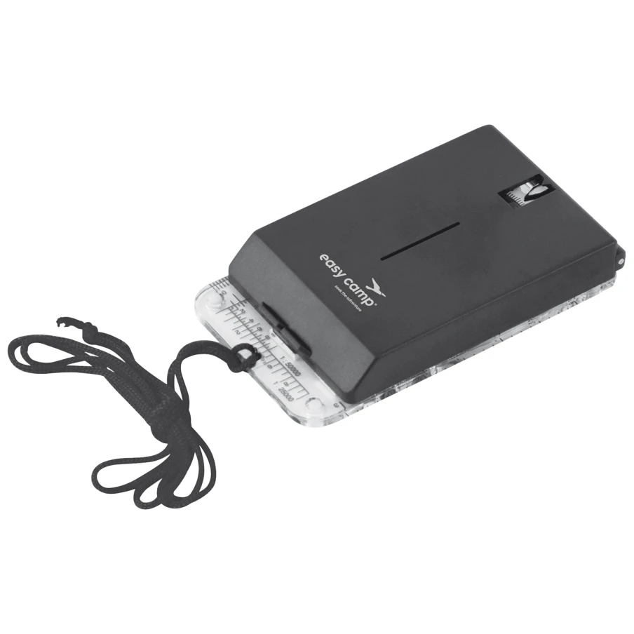 Der Kompass Map Compass Mirror von der dänischen Qualitätsfirma Easy Camp ist mit einem Spiegel, einer im Dunkeln leuchtenden Peillinie, einem Neigungsmesser, einer Lupe, einer Silikonunterlage für bessere Reibung und einem drehbaren Zifferblatt ausgestattet. Es lässt sich kompakt zusammenfalten und enthält Markierungen zum Vermessen auf der Karte. Der Kompass ist mit Öl gefüllt und wird mit einer Trageschnur geliefert.