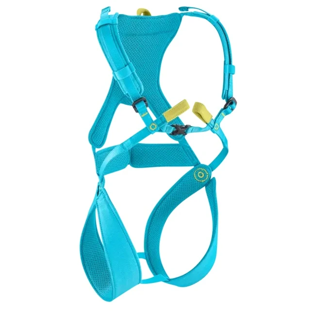 Fraggle III von Edelrid ist ein Ganzkörpergurt, der für kleine Kletterer bis 40 kg geeignet ist. Das Anziehen ist durch zwei Schnallen leicht möglich.