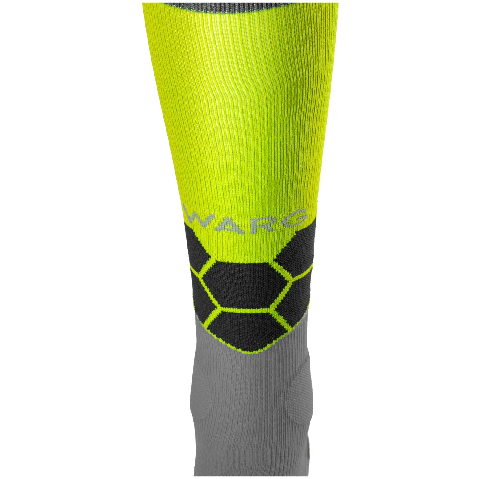 Kompressions- Kniestrümpfe Warg Runner M verbessern die Durchblutung in den Muskeln, verringern Muskelschäden bei längerer körperlicher Betätigung und verringern die Ermüdung. Für eine bessere Belüftung sorgen spezielle Belüftungskanäle an der Wade und am Knöchel. Anti-Rutsch-Stretch im Spann- und Fußbereich sorgt dafür, dass die Kniestrümpfe nicht vom Bein rutschen. Die am stärksten beanspruchten Bereiche des Fußes, der Zehen, Fersen und Achillessehnen, sind mit einer doppelten Materialschicht verstärkt, die eine Polsterschicht gegen Druckstellenbildet. Die Socken sind dünn und können das ganze Jahr über verwendet werden.