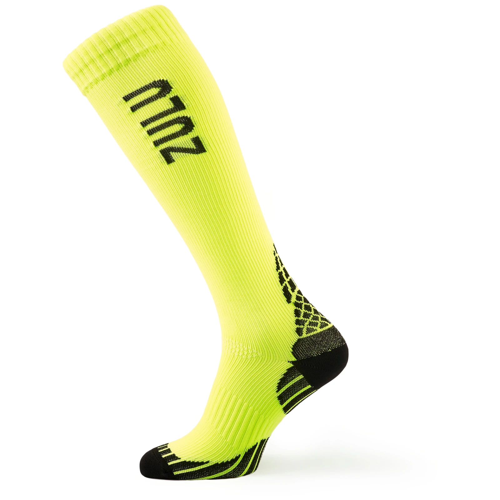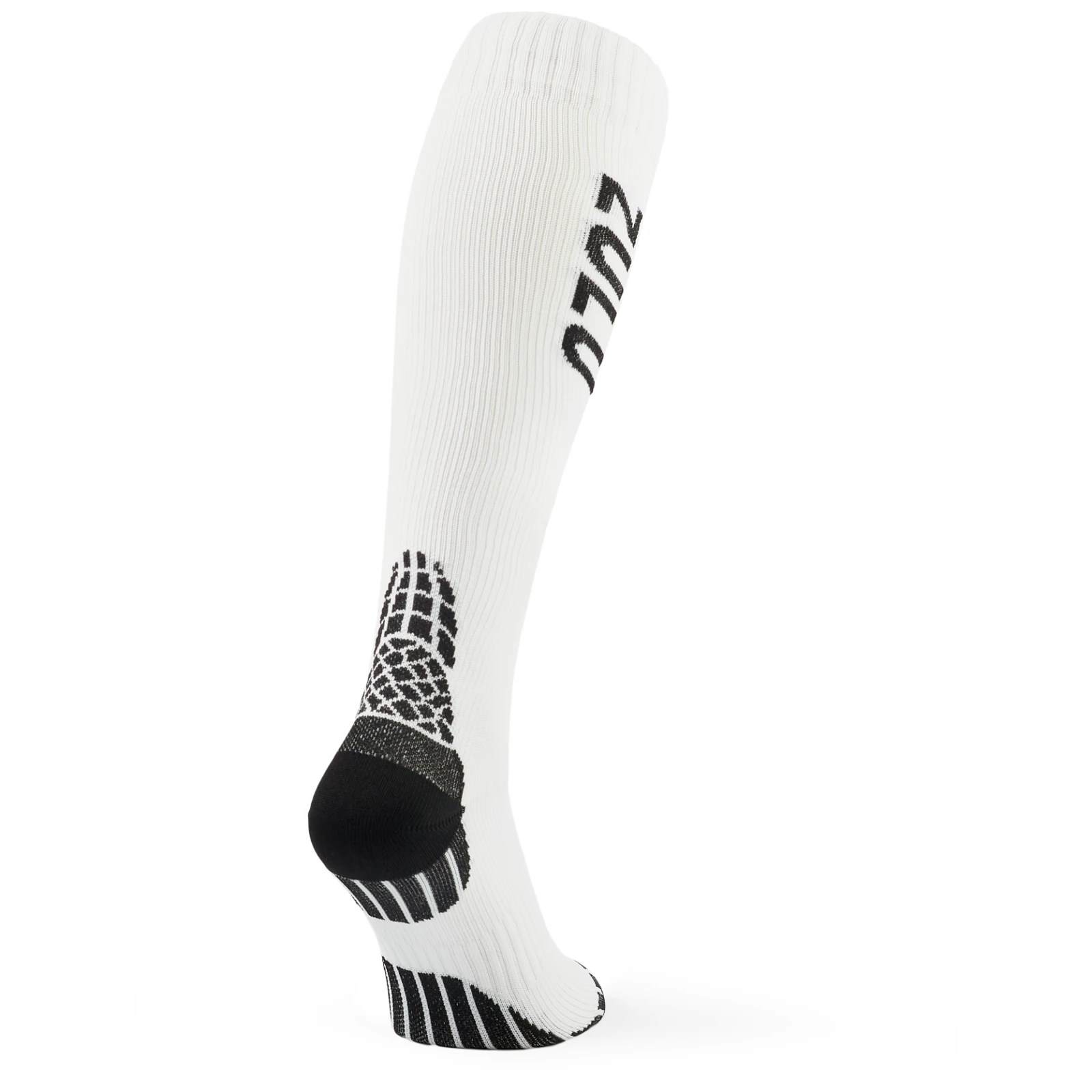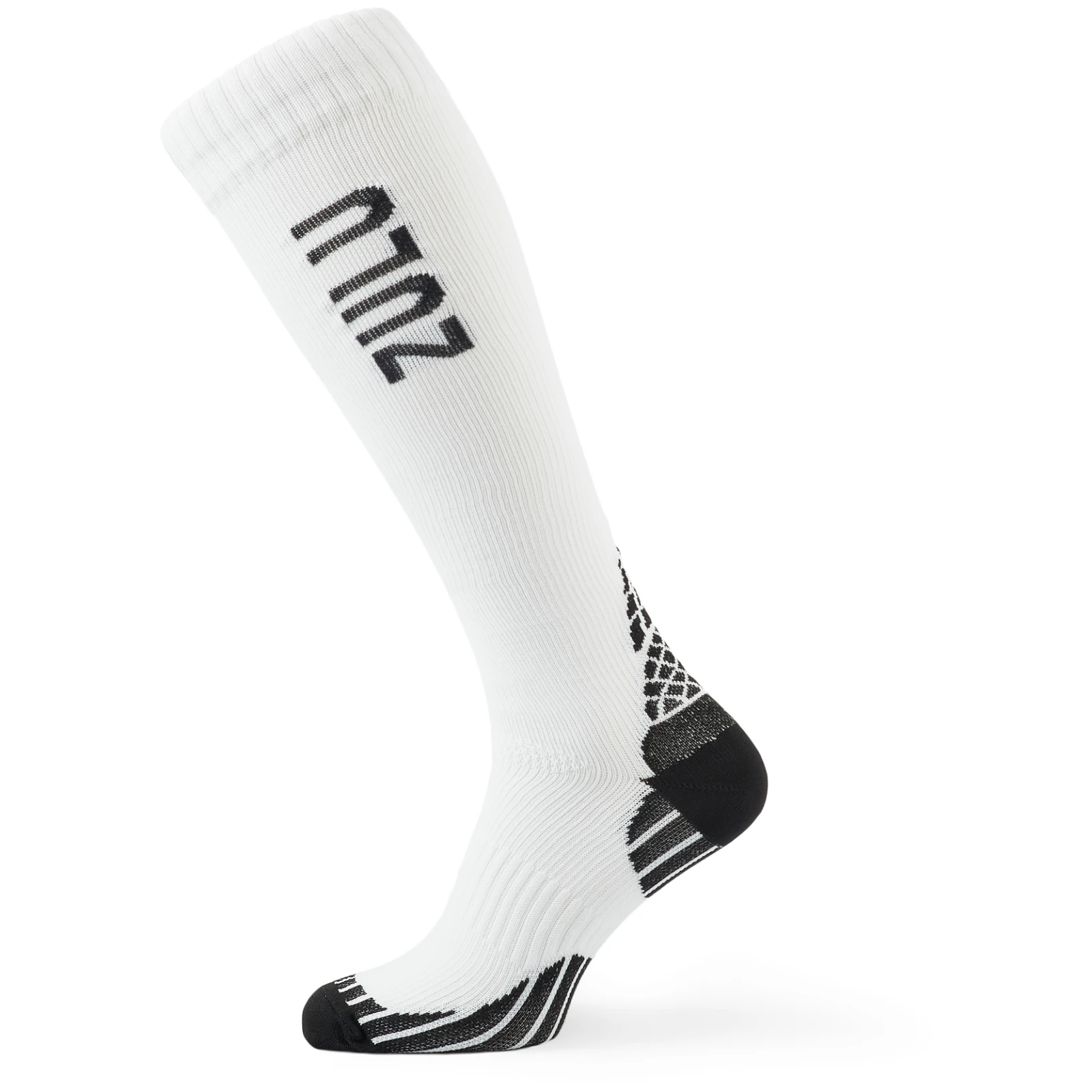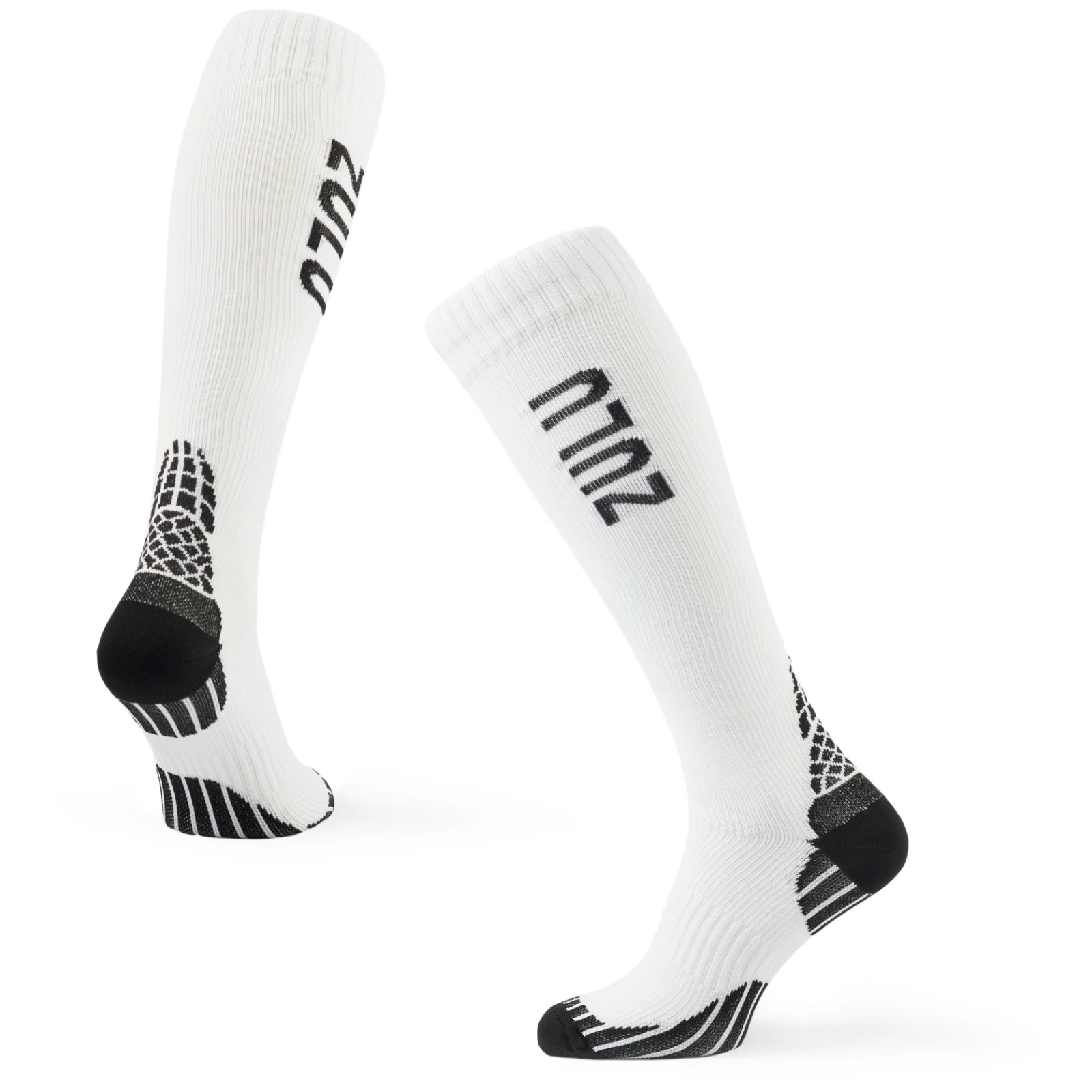 Kompressions- Kniestrümpfe für Damen Zulu Run Compression W verbessern die Durchblutung in den Muskeln, verringern Muskelschäden bei längerer körperlicher Betätigung und verringern die Ermüdung. Für eine bessere Belüftung sorgen spezielle Belüftungskanäle an der Wade und im Knöchelbereich. Anti-Rutsch-Stretch im Spann- und Fußbereich sorgt dafür, dass die Kniestrümpfe nicht vom Bein rutschen. Die am stärksten beanspruchten Bereiche des Fußes, der Zehen, Fersen und Achillessehnen, sind mit einer doppelten Materialschicht verstärkt, die eine Polsterschicht gegen Druckstellenbildet. Die Socken sind dünn und können das ganze Jahr über verwendet werden.