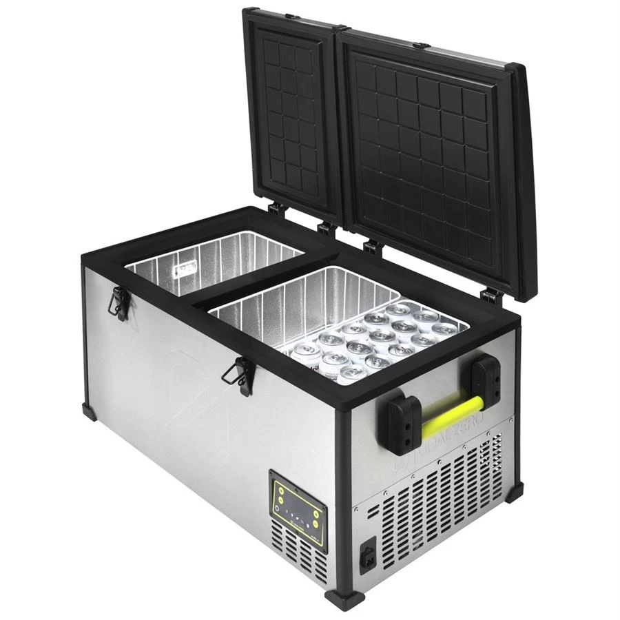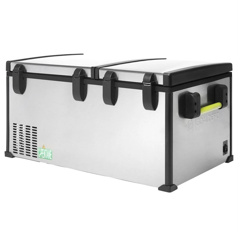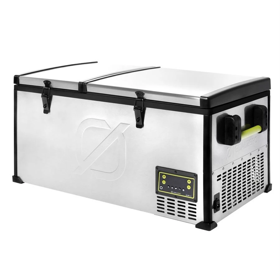 Der Kompressorkühlschrank Goal Zero Alta 50 ist auf -20 °C einstellbar, sodass Sie ihn nicht nur als Kühlschrank, sondern auch als Gefrierschrank nutzen können. Dank seines Volumens von 53 l bietet er Platz für bis zu 75 Dosen à 350 ml. Es ist aus Edelstahl gefertigt und verfügt über drei herausnehmbare Tabletts.