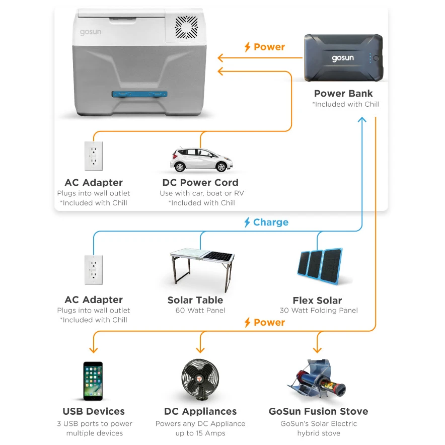 Hinter dem Unternehmen GoSun steht der amerikanische Wissenschaftler und Solarenergie-Experte Patrick Sherwin. Die Marke bietet derzeit ein komplettes Ökosystem an Solarprodukten, einschließlich eines Solar-Kühlschranks, Tisches und vier Arten von Kochern (Grills).
