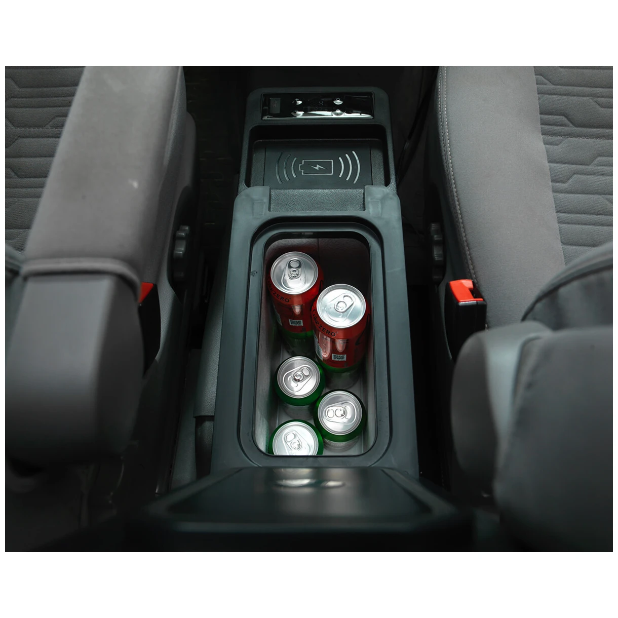 Ein praktisches Detail ist ein Fach, in dem Sie Ihr Mobiltelefon kabellos aufladen können und ein USB-Anschluss, über den Sie andere kleine elektronische Geräte aufladen können. Vorrangig konzipiert für VW California, MB Marco Polo usw.