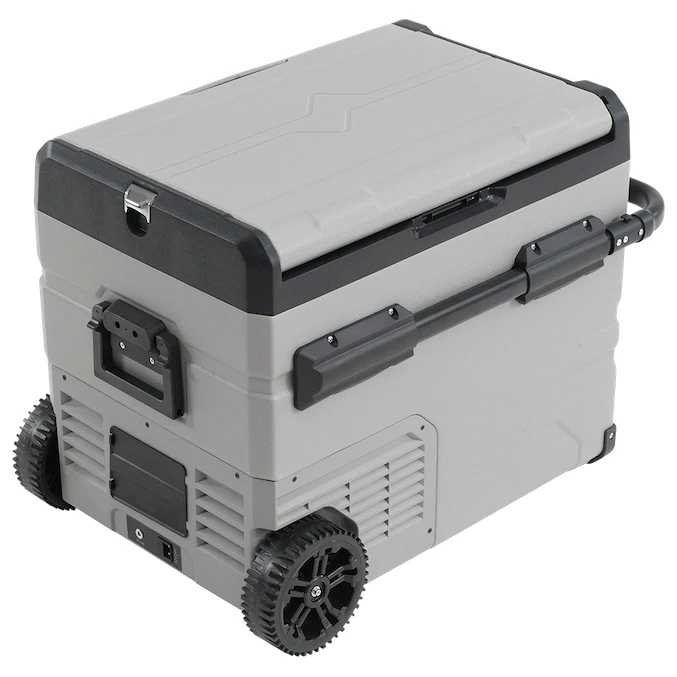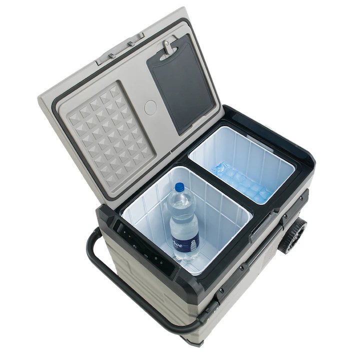 Die Konstruktion besteht aus massivem Kunststoff. Große abnehmbare, pannensichere Räder , ausziehbare Griffe und gefederte Griffegewährleisten eine bequeme Handhabung und ein bequemes Tragen. Der Innenraum ist wasserdicht, mit Drahtkörben sowie einem Ablassventil ausgestattet und verfügt über eine Beleuchtung. Der Deckel lässt sich beidseitig öffnen und auch komplett abnehmen. Eine praktische Kleinigkeit ist der USB 5V/1A-Anschluss, über den Sie kleine elektronische Geräte aufladen können. Den integrierten Flaschenöffnerwerden Sie auf dem Campingplatz sicher zu schätzen wissen.