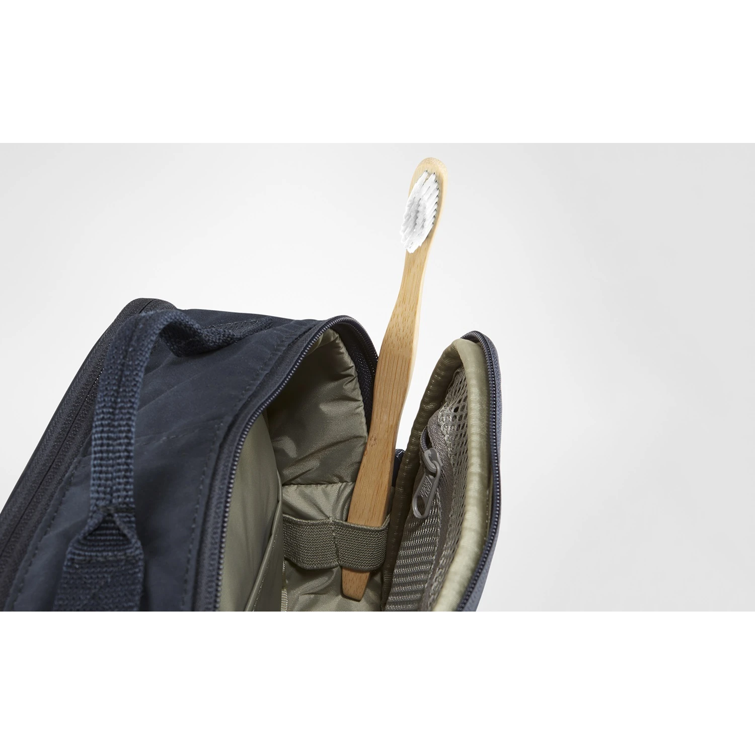 Der praktische Kånken Toiletry Bag von Fjällräven besteht aus strapazierfähigem, gewachstem G-1000 HeavyDuty Eco S-Gewebe und ermöglicht die praktische Aufbewahrung von Seife, Zahnpasta und anderen Toilettenartikeln. Durch das Wachsen wird der Inhalt vor Feuchtigkeit und Schmutz geschützt. Der Inhalt wird zusätzlich durch eine Schaumstoffpolsterung geschützt, die der Tasche gleichzeitig ihre Form gibt. Die Tasche bietet außerdem eine Netztasche mit Reißverschluss im Hauptfach und zwei geräumige Fächer mit YKK-Reißverschluss.