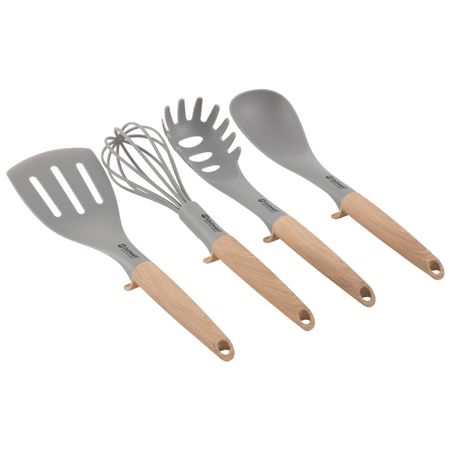 Das Almada Untesil Set Küchenhelfer-Set der Marke Outwell ist ideal für Reisen und Camping. Es ist auch für Kochgeschirr mit Teflon- oder Keramikoberfläche geeignet.